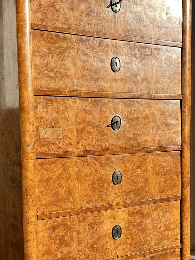 Biedermeier 6 šuflíková komoda v topoľovej korenici. (1860-1880) .