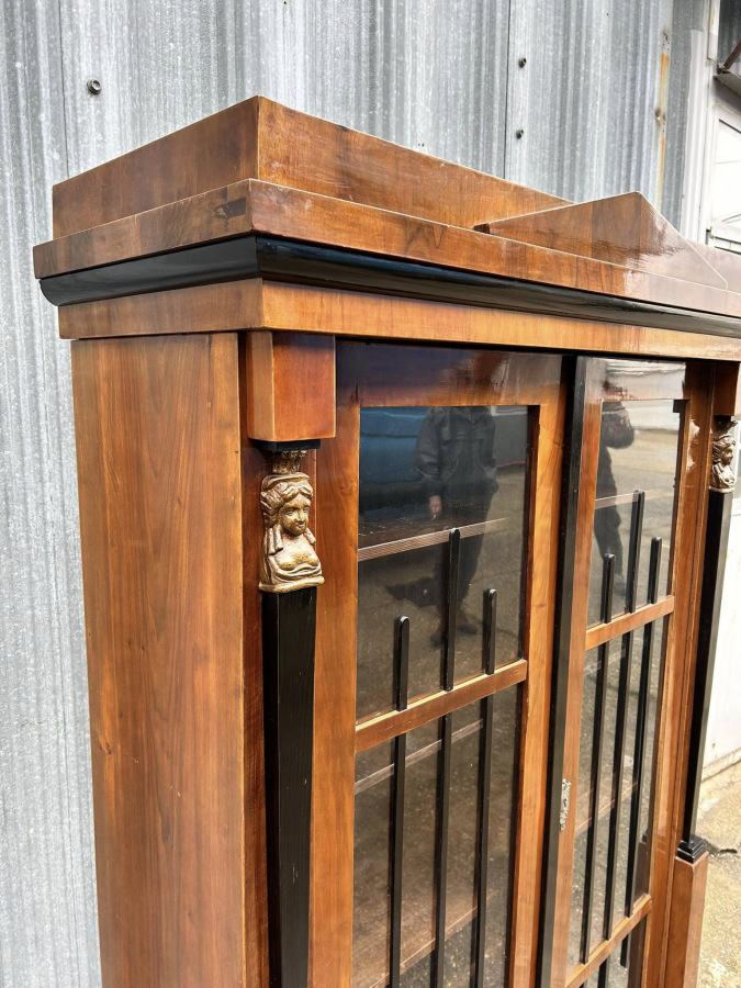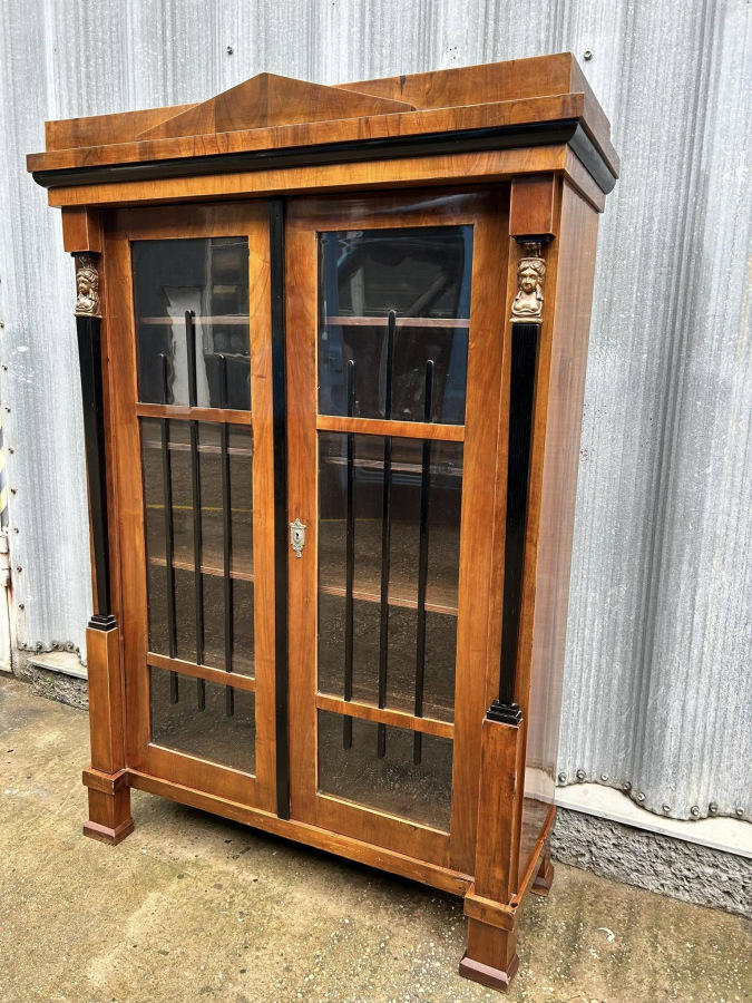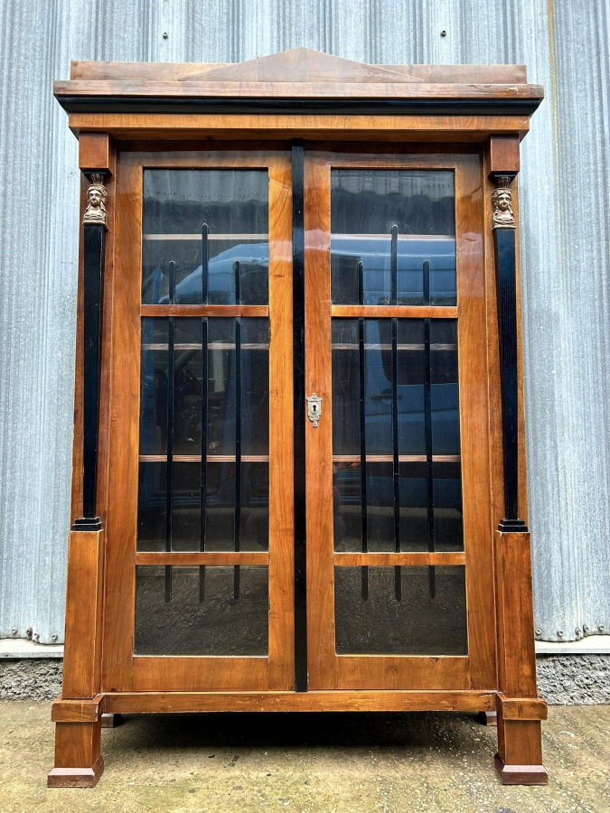 Empírová Knižnica / vitrína (r. 1830) V krásnom bytovom stave s pôvodnou povrchovou úpravou šelak!!! Krásna dobová knižnica, zberateľský kus.