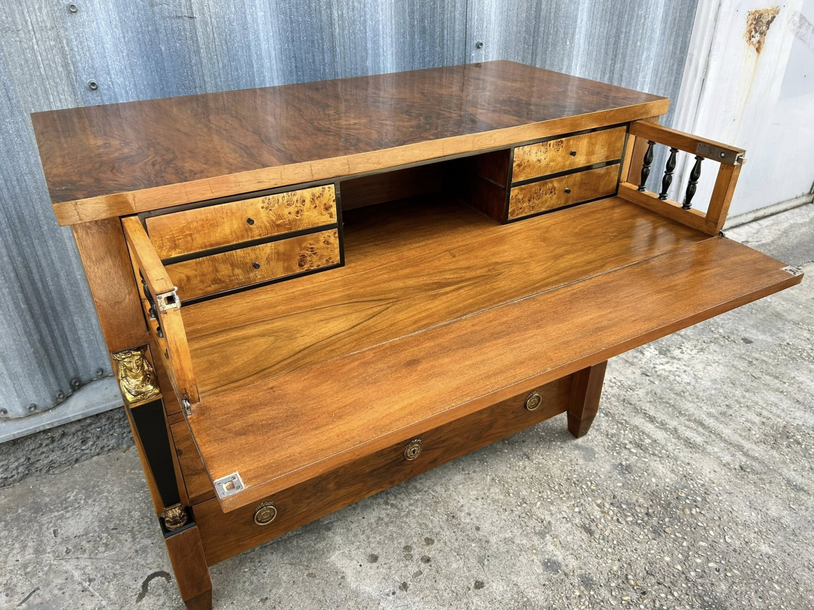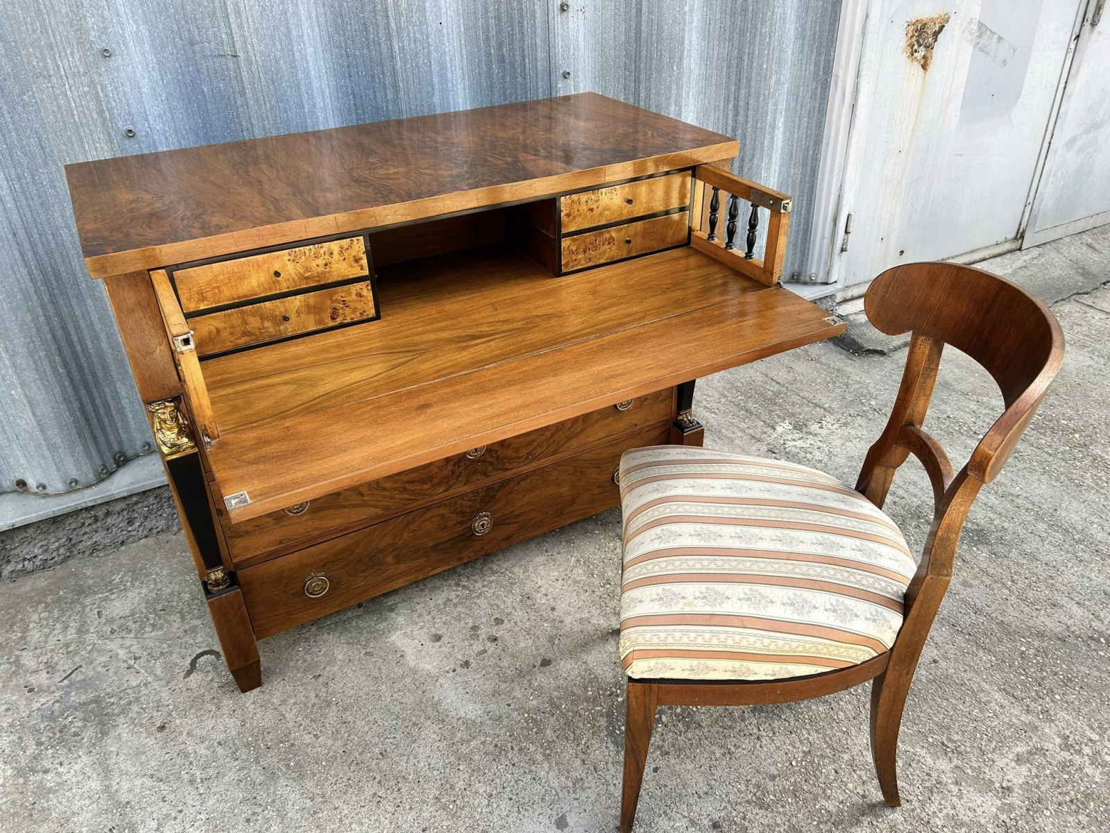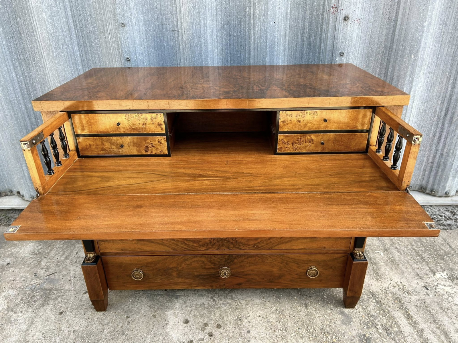 Empírová/biedermeier písacia komoda/pracovňa, kompletne zreštaurovaná. V jedinečnom stave s krásnou orechovou dýhou! Ihneď k odberu!