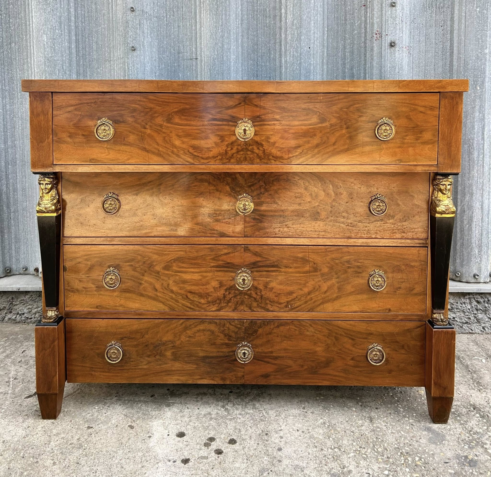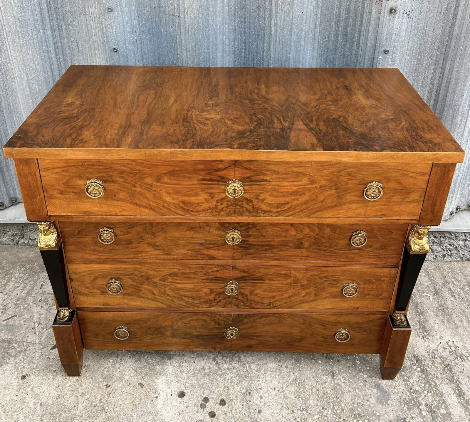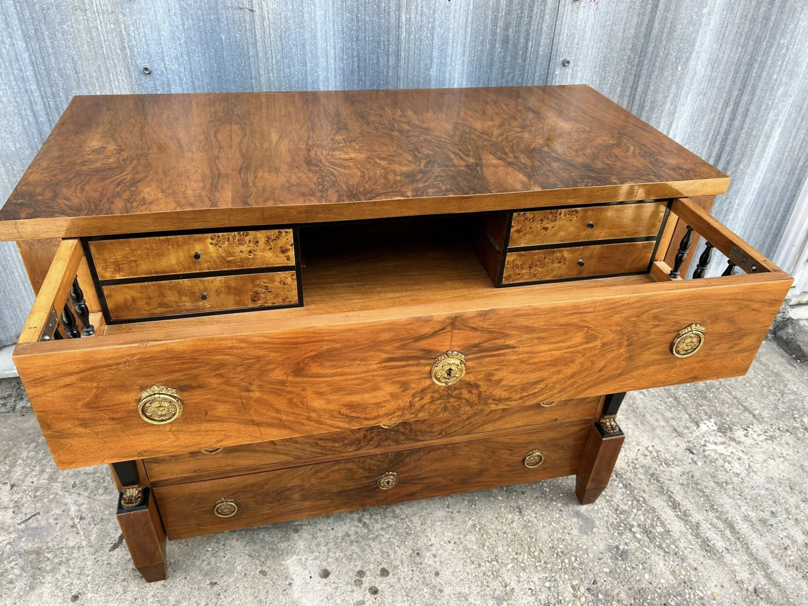 Empírová/biedermeier písacia komoda/pracovňa, kompletne zreštaurovaná. V jedinečnom stave s krásnou orechovou dýhou! Ihneď k odberu!