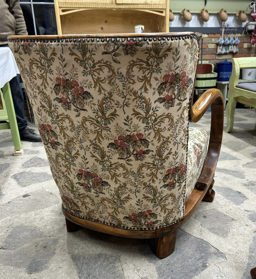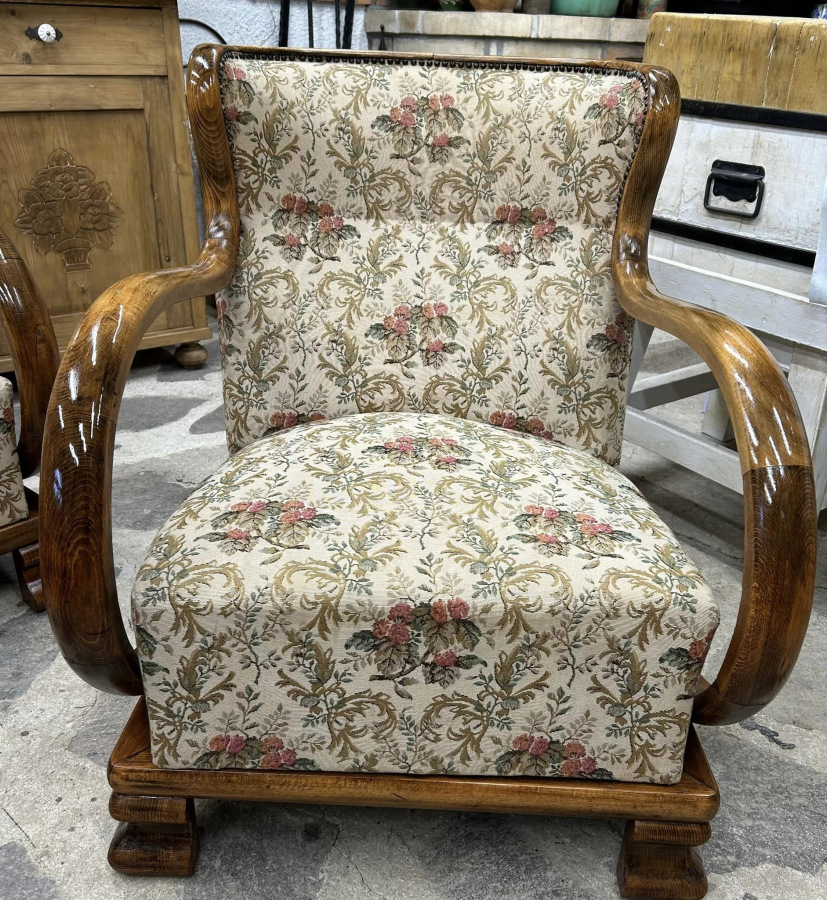 F126 - Art DECO kreslá po renovácii dreva a stability, s krásnou zachovalou pôvodnou látkou, v bezchybnom stave. Ihneď k odberu