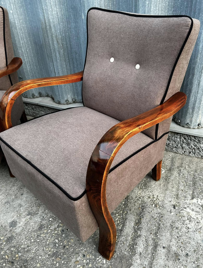 F137 - Art DECO Kreslá po kompletnej renovácii s jemnou látkou a krásnymi podrúčkami. Ihneď k odberu!!!