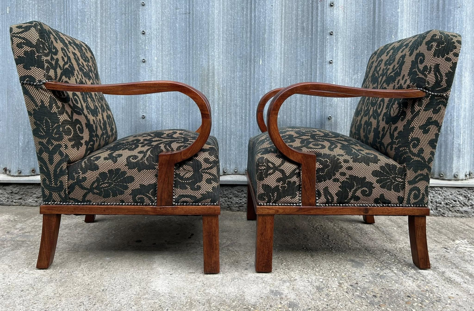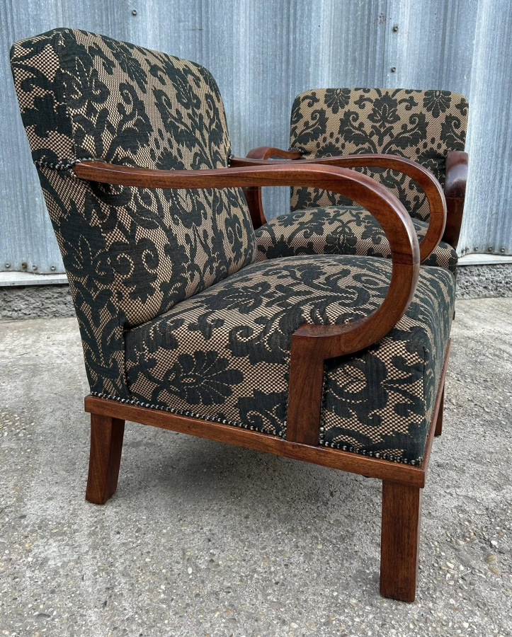 F151 - Originálné Art DECO čajové kresielká, zrenovované do decentného vzhľadu!!! Krásna poťahová látka v antickom štýle dodáva útulnosť a pohodlie kresiel. Ihned k odberu!!!