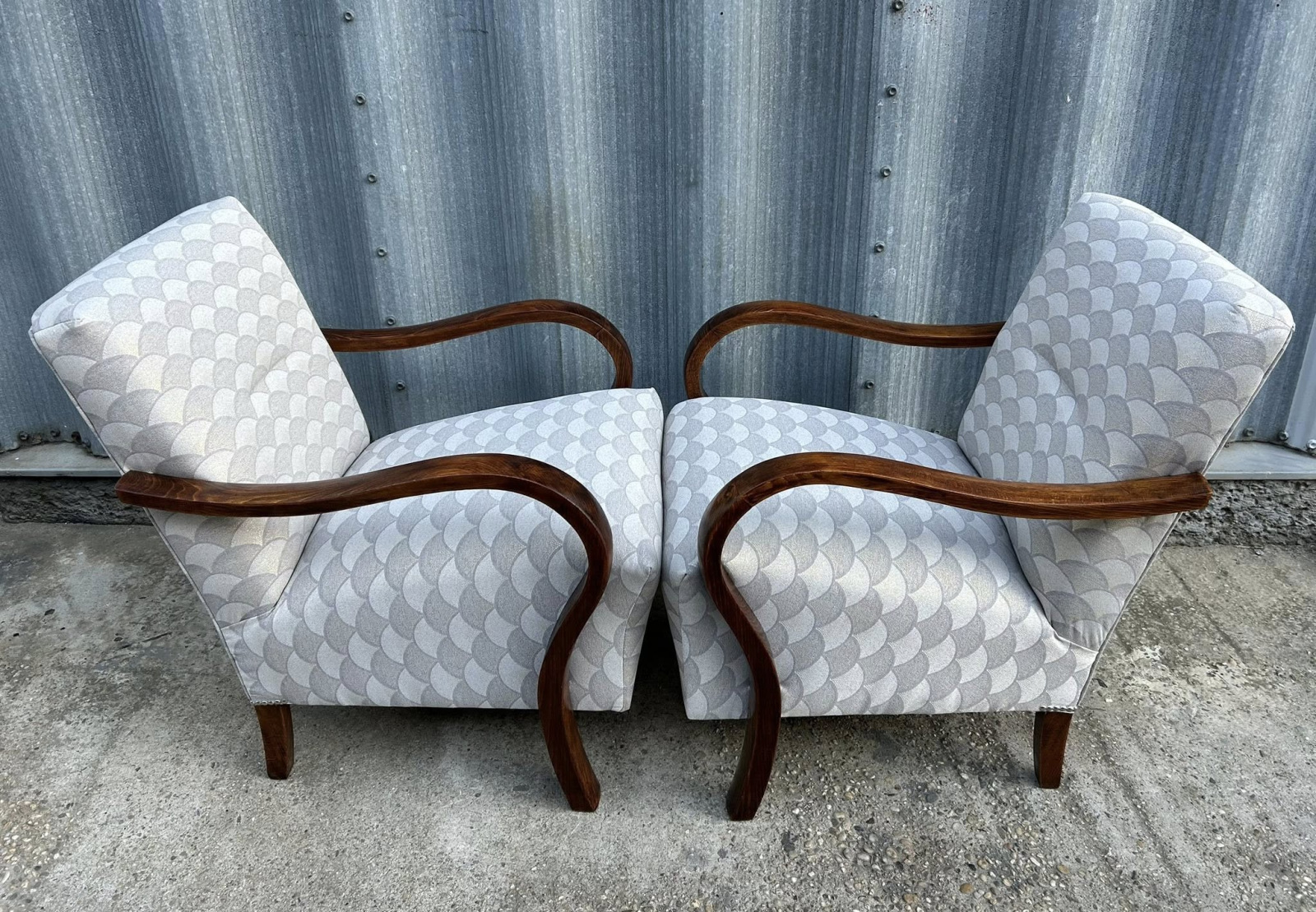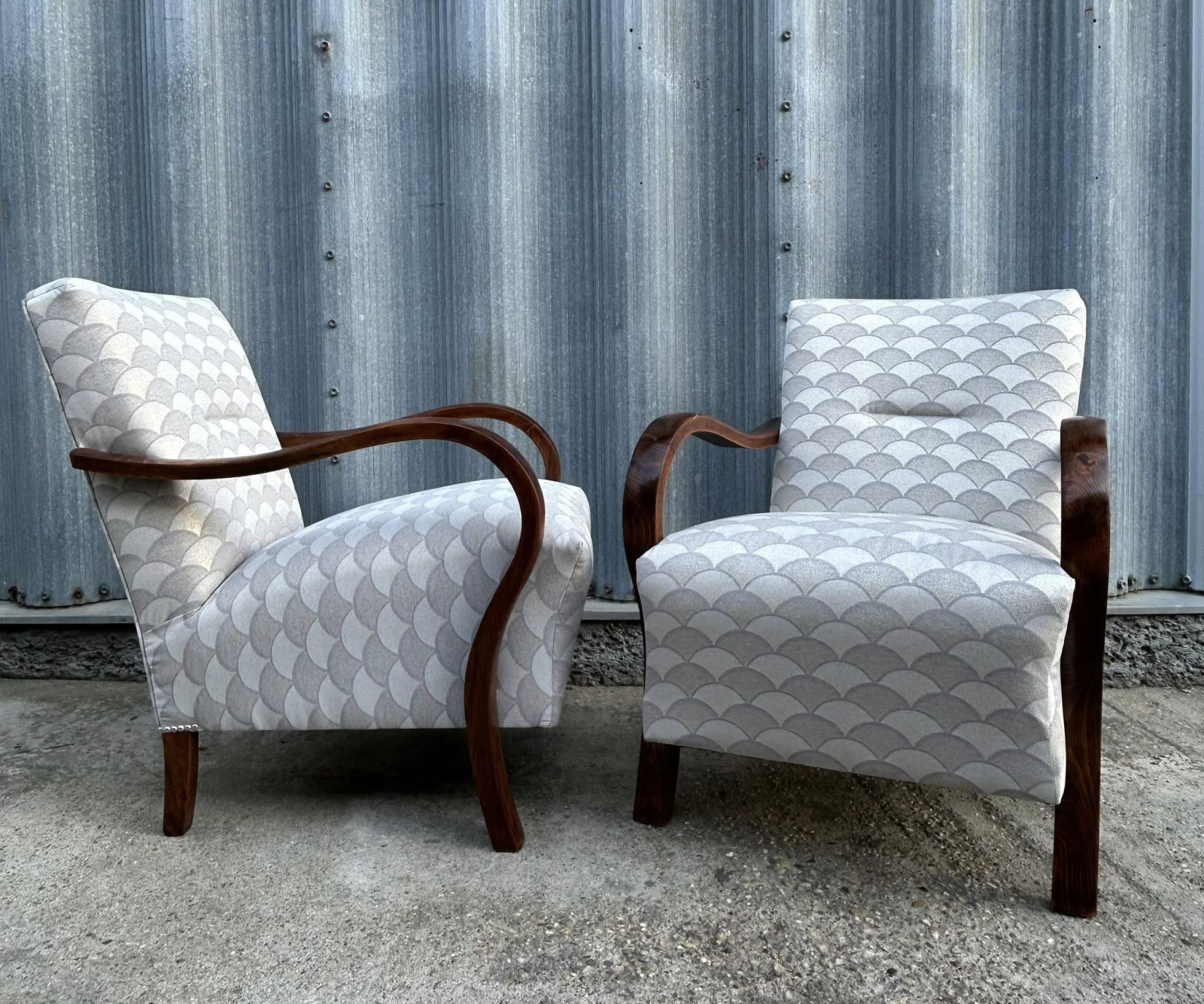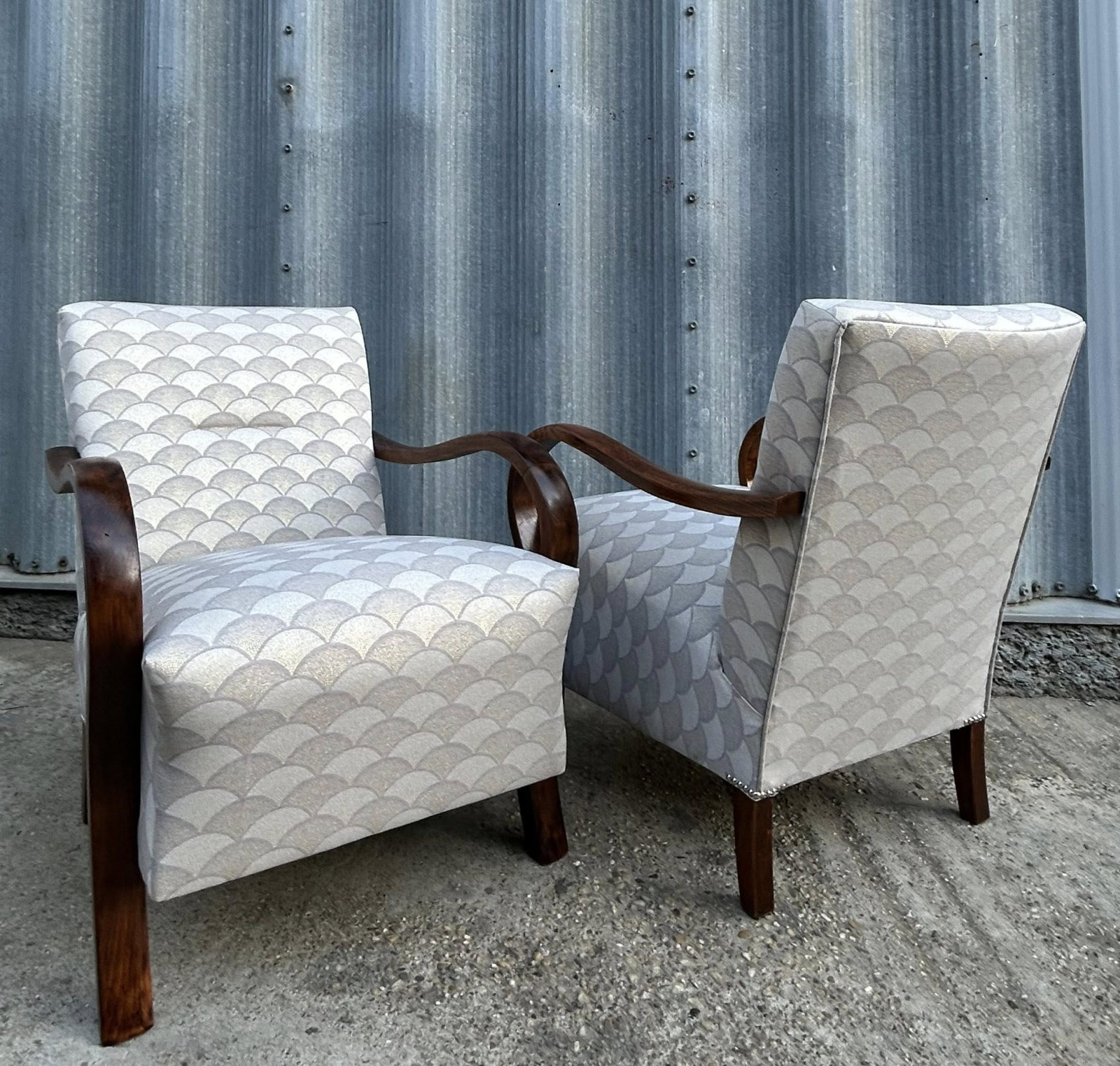 F205 - Art DECO kreslá, zrenovované na komplet, v krásnej poťahovej látke s efektom Pávieho pierka!!!