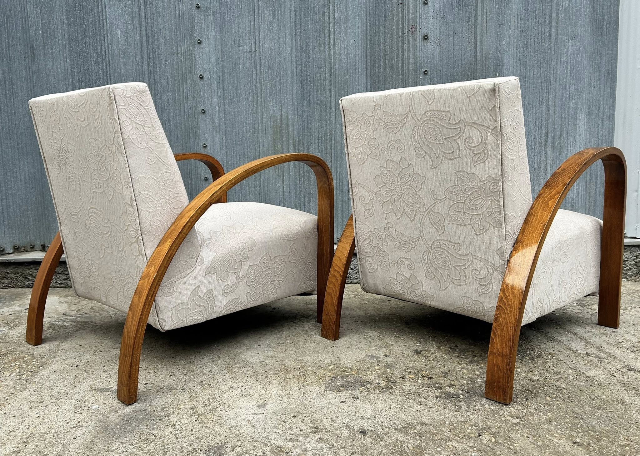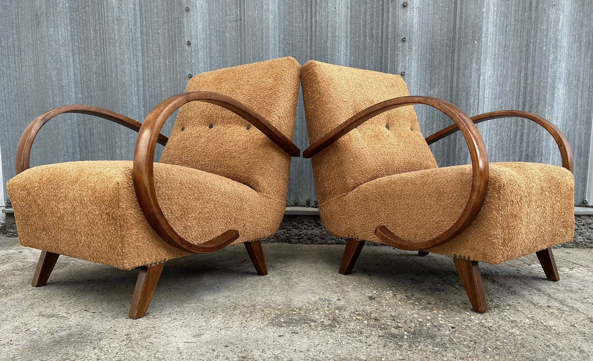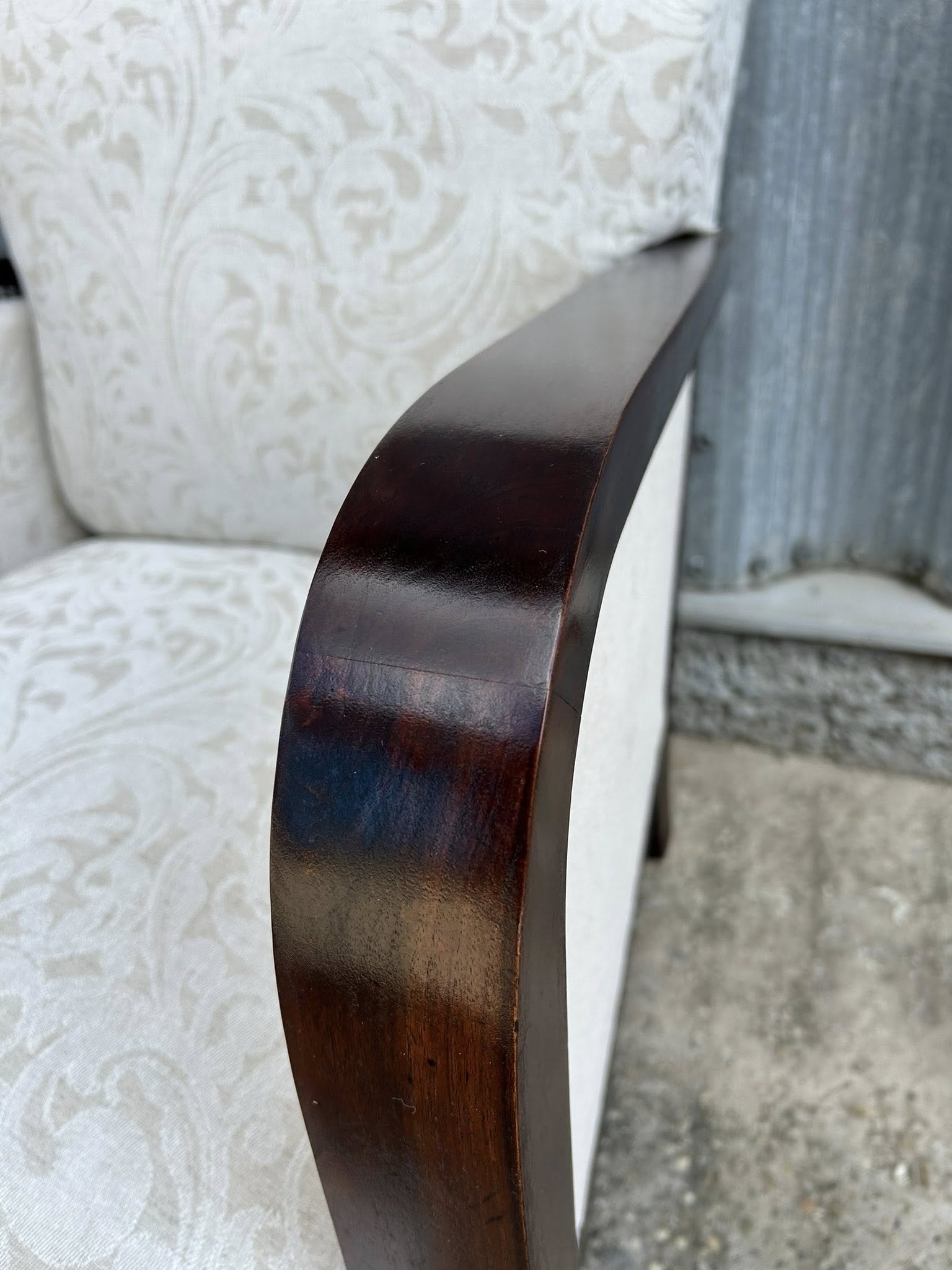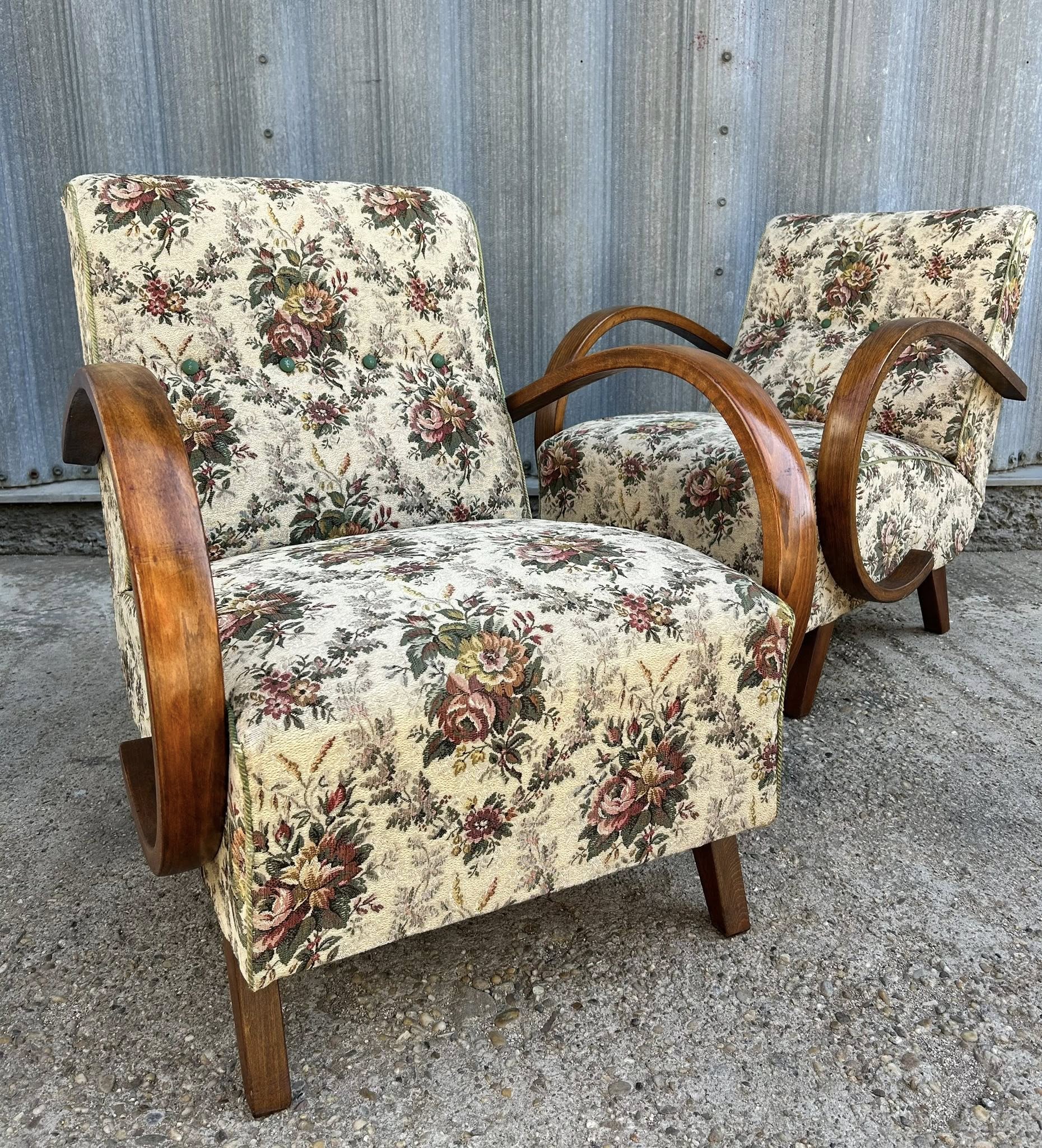 F140 - Ikonické Art DECO kreslá, dizajnový prvok, s krásnymi ohýbanými podrúčkami. Po renovácii dreva!!! Kreslá vieme dať prečaluniť podľa vaších predstáv, do Vami dodanej poťahovej látky. Cena pred čalúnením 400€/ks