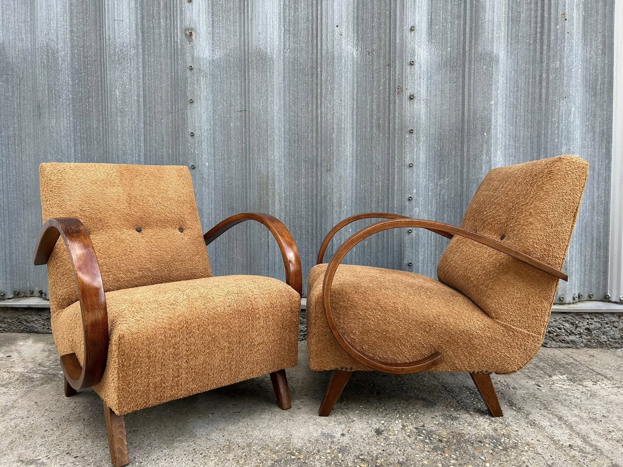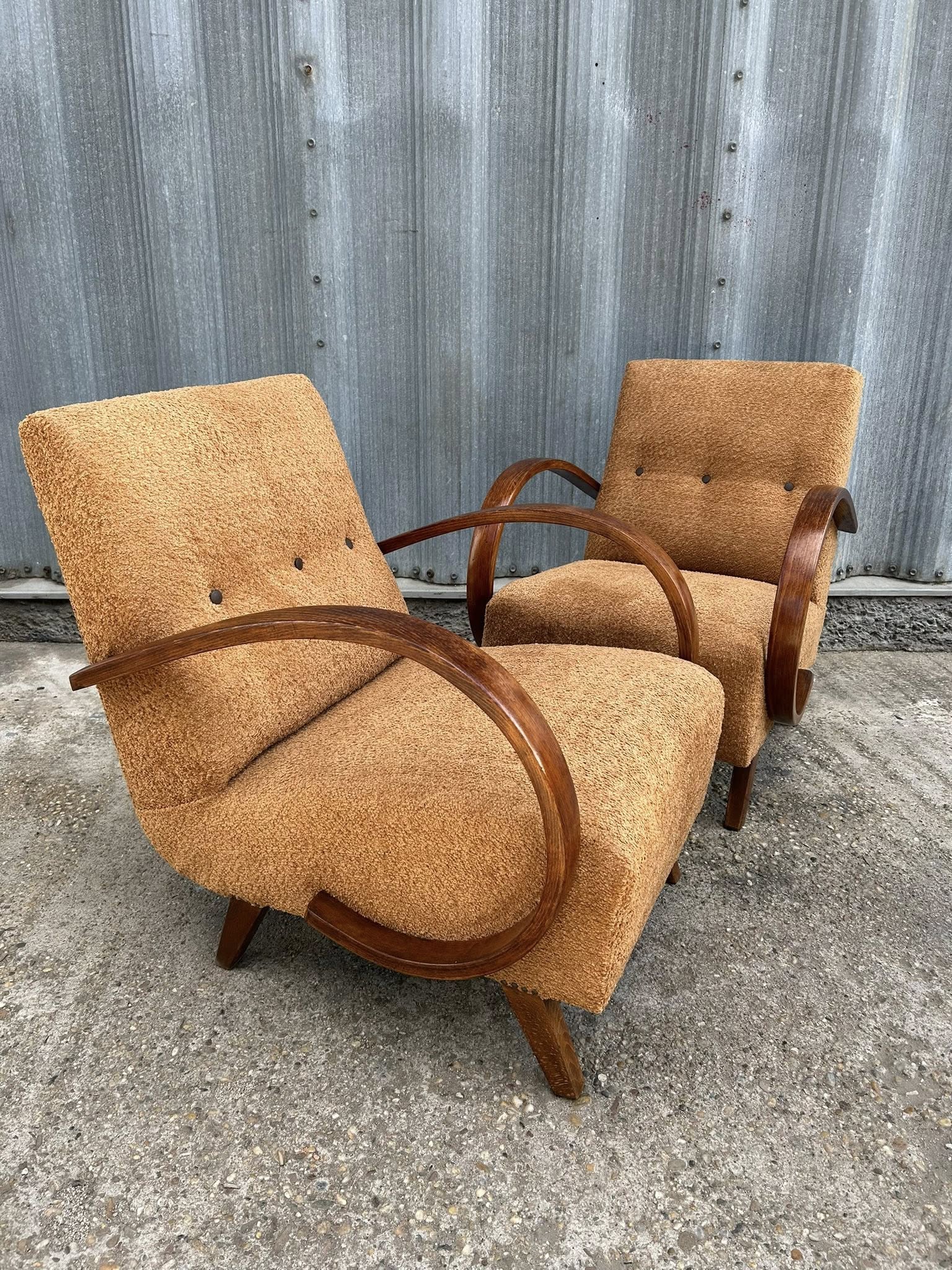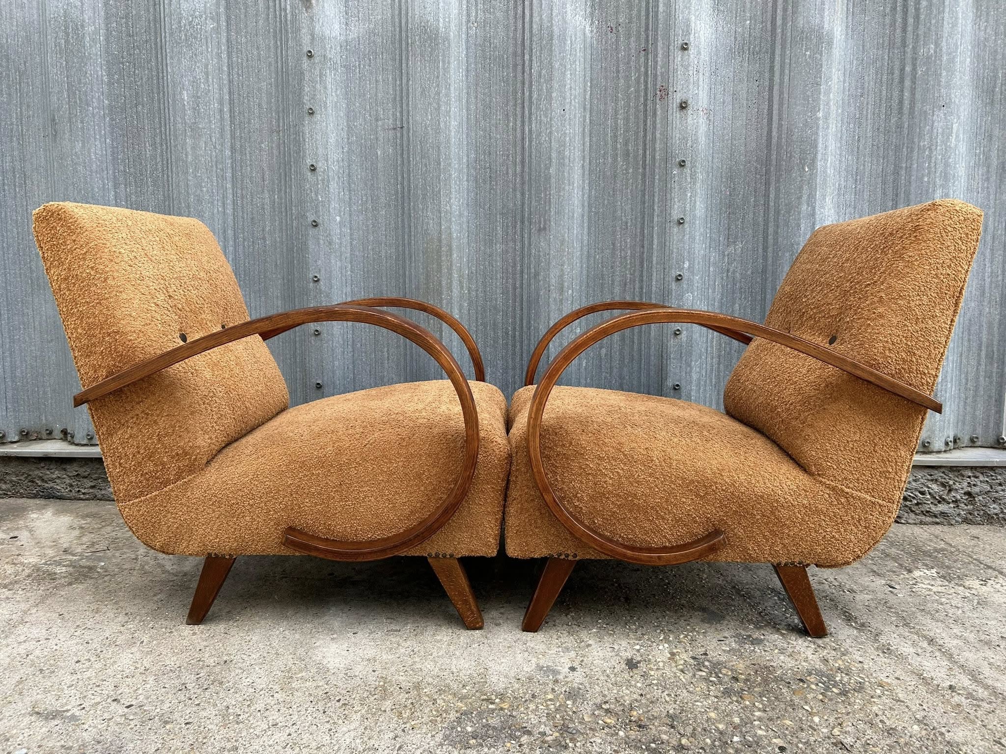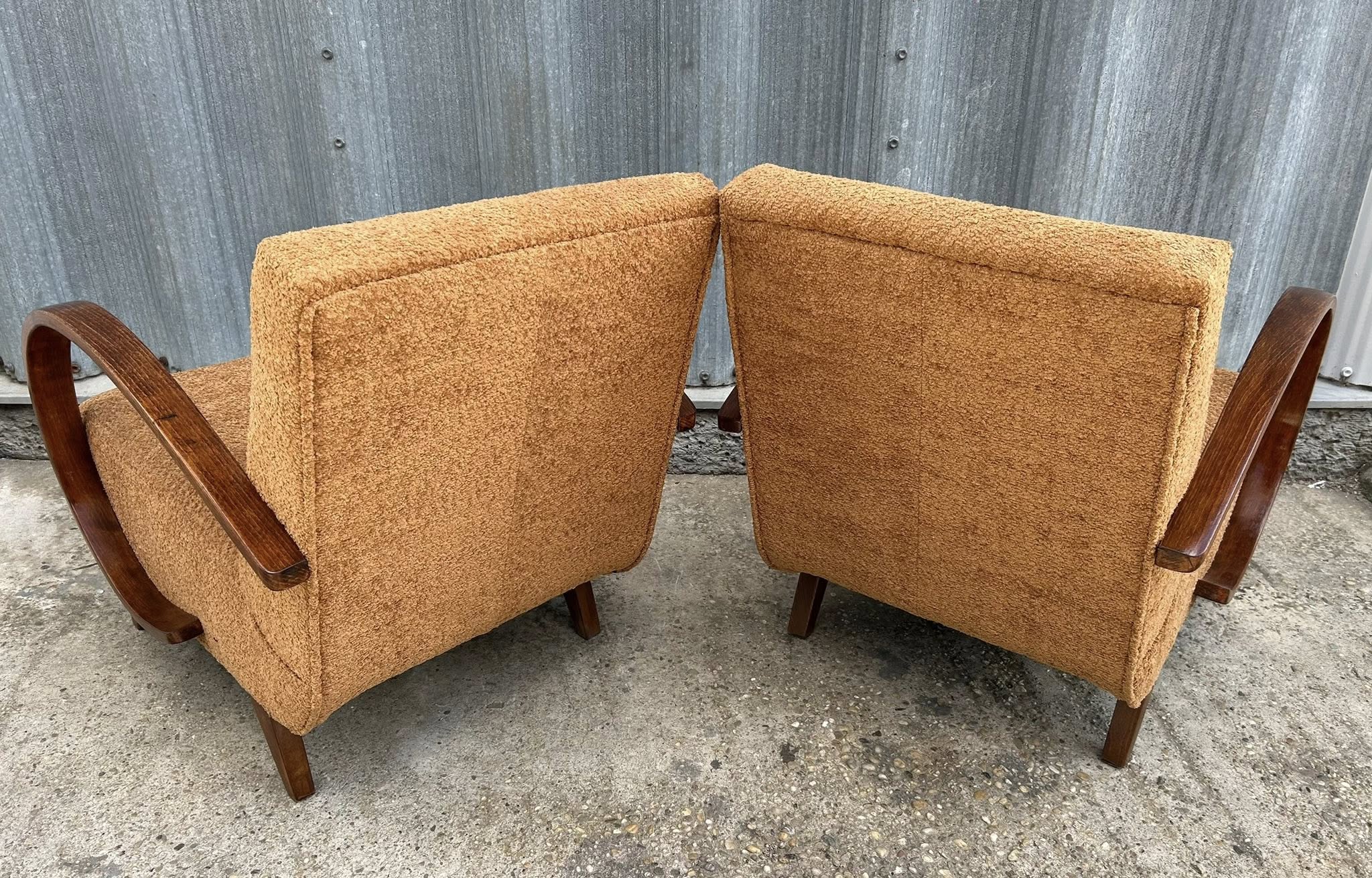 F140 - Ikonické Art DECO kreslá, dizajnový prvok, s krásnymi ohýbanými podrúčkami. Po renovácii dreva!!! Kreslá vieme dať prečaluniť podľa vaších predstáv, do Vami dodanej poťahovej látky. Cena pred čalúnením 400€/ks