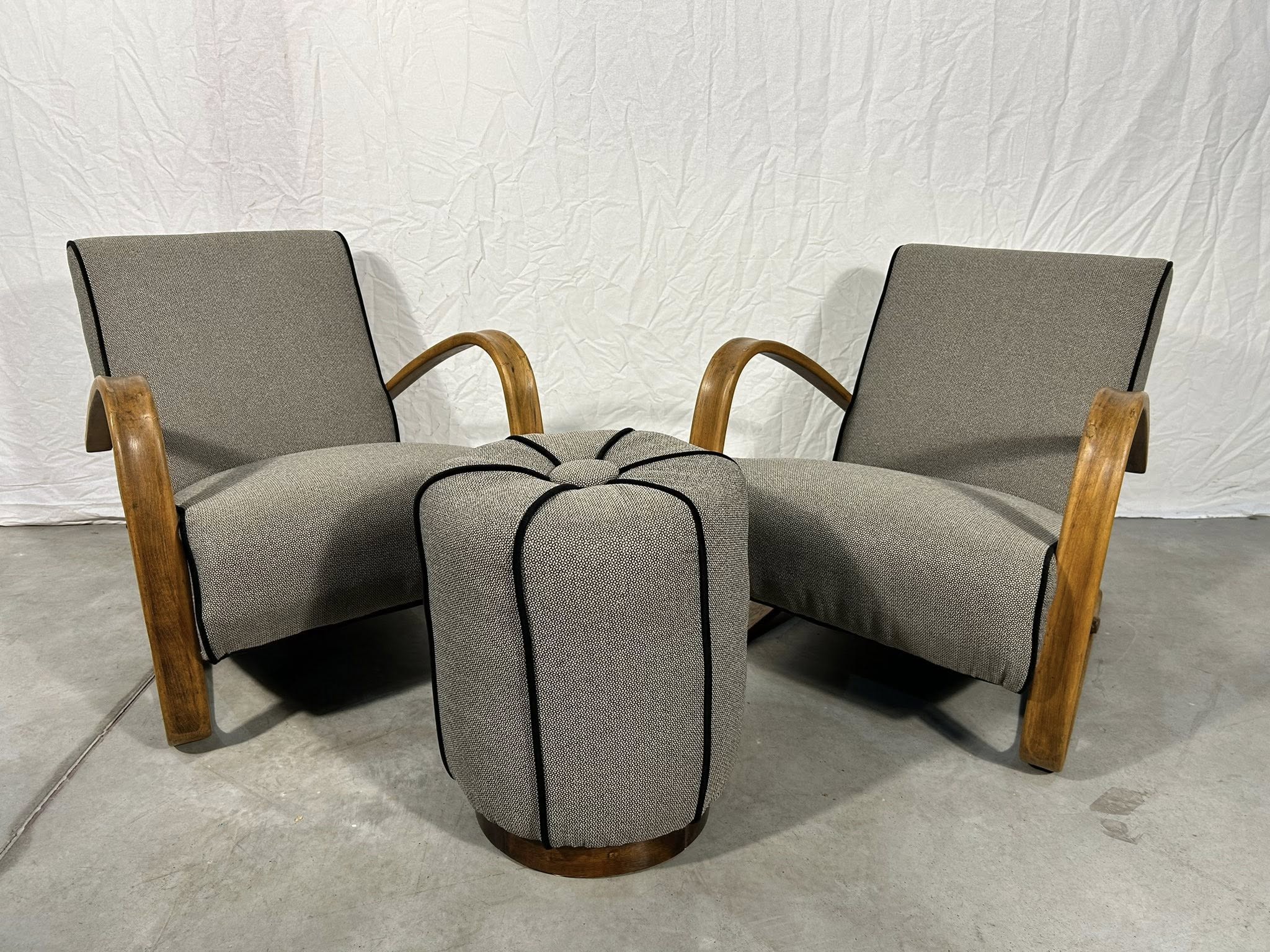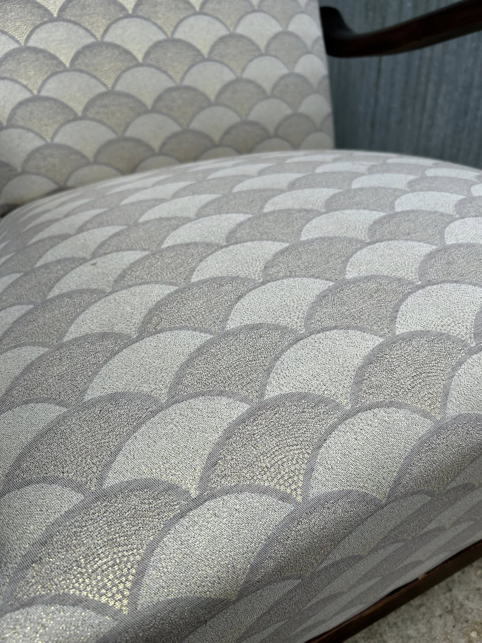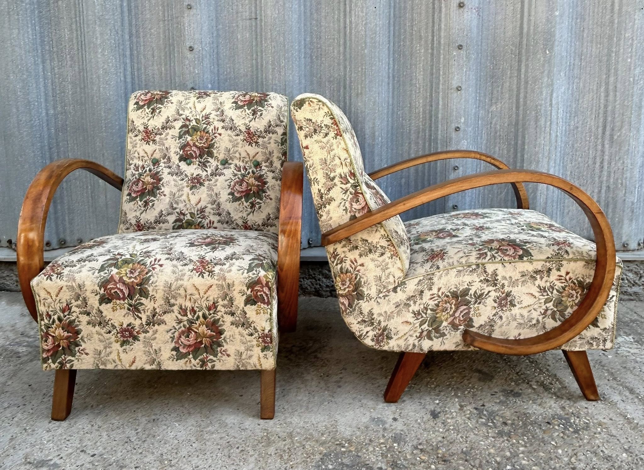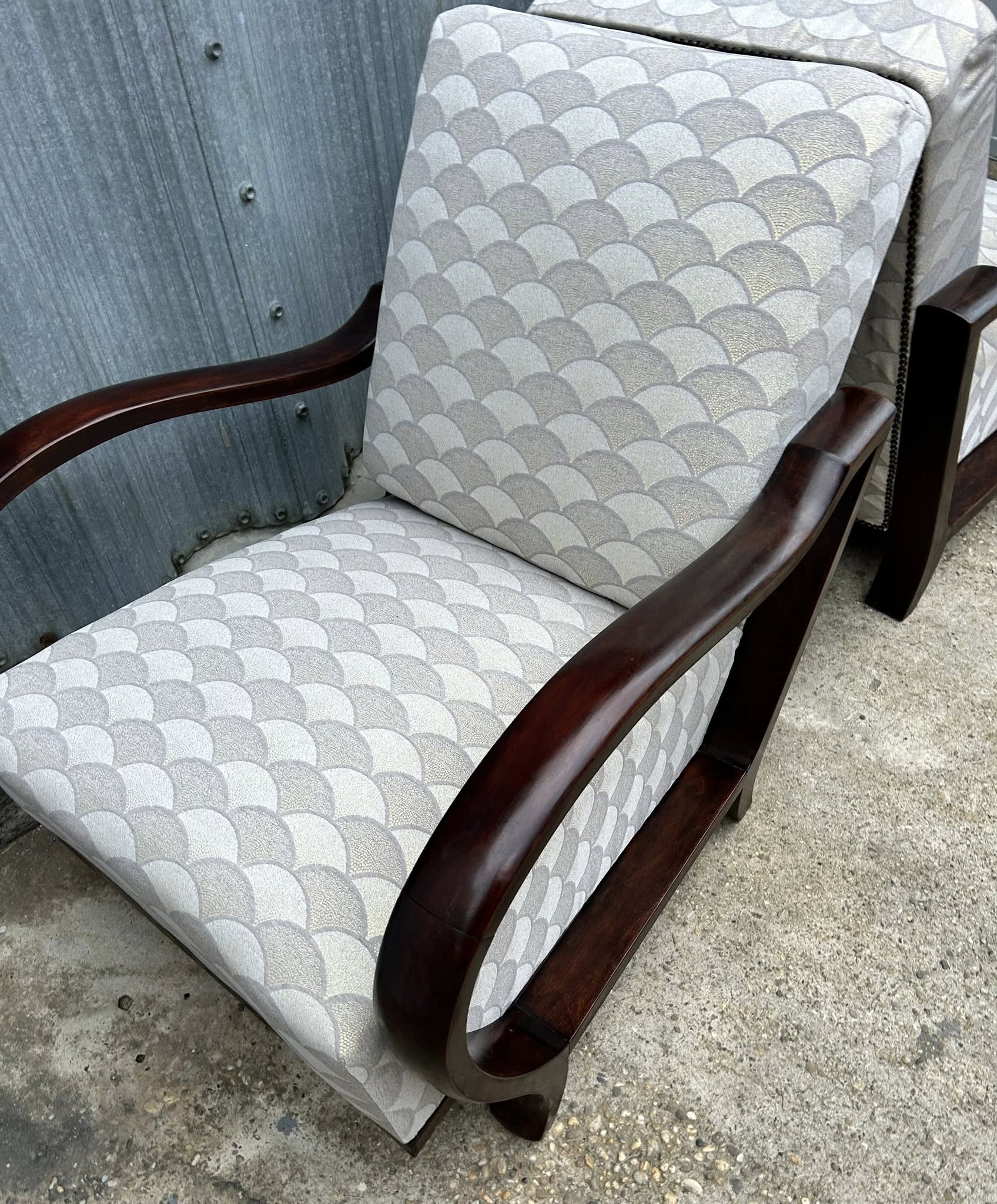 Art DECO kreslá s ohýbanými podrúčkami a poťahom typickým pre kreslá s obdobia Art DECO.