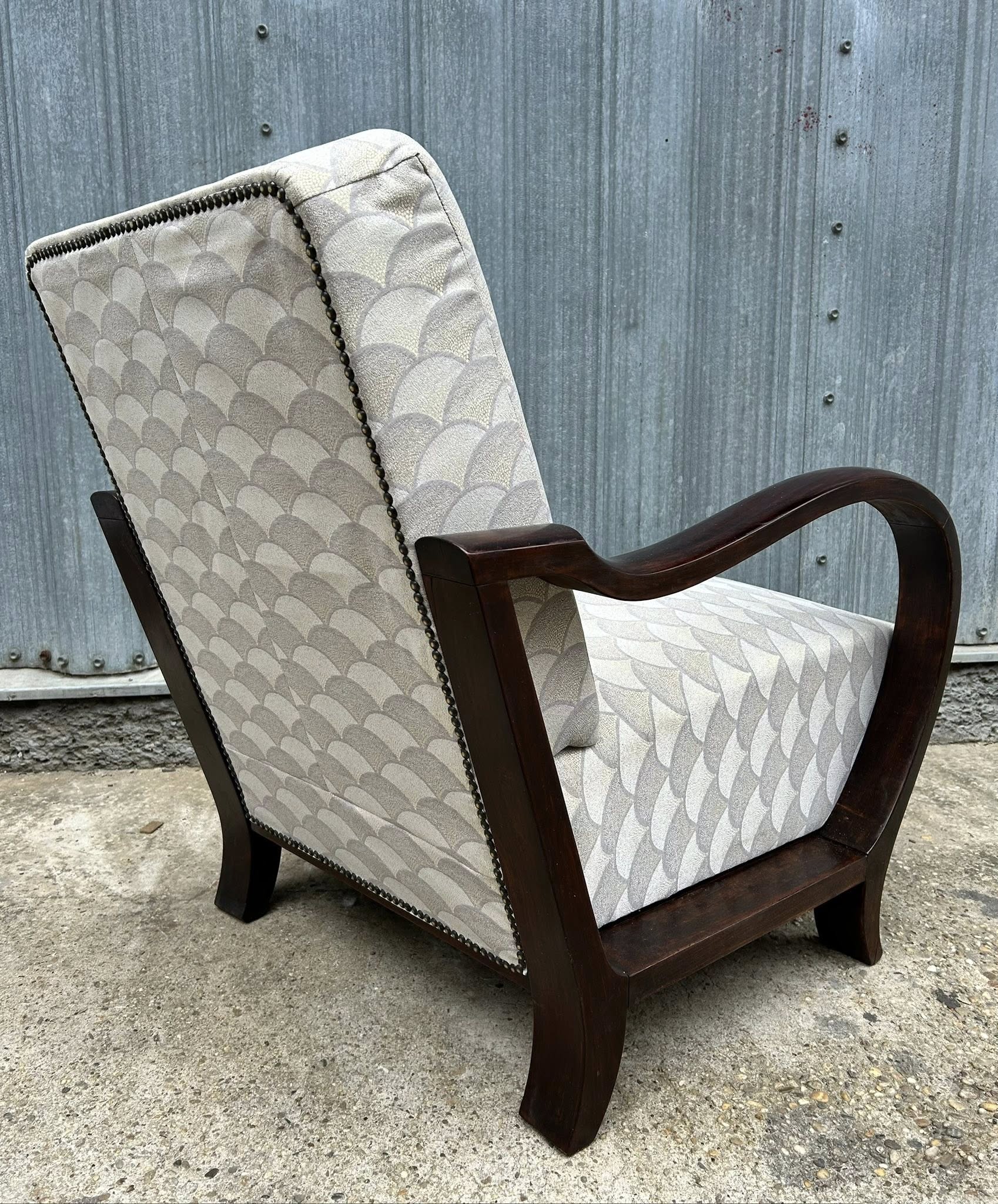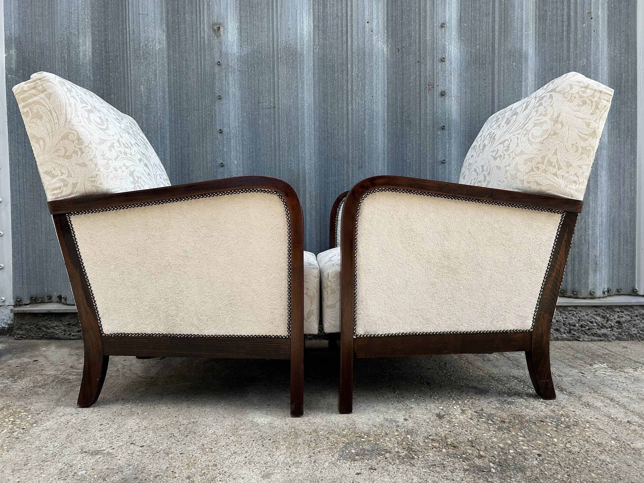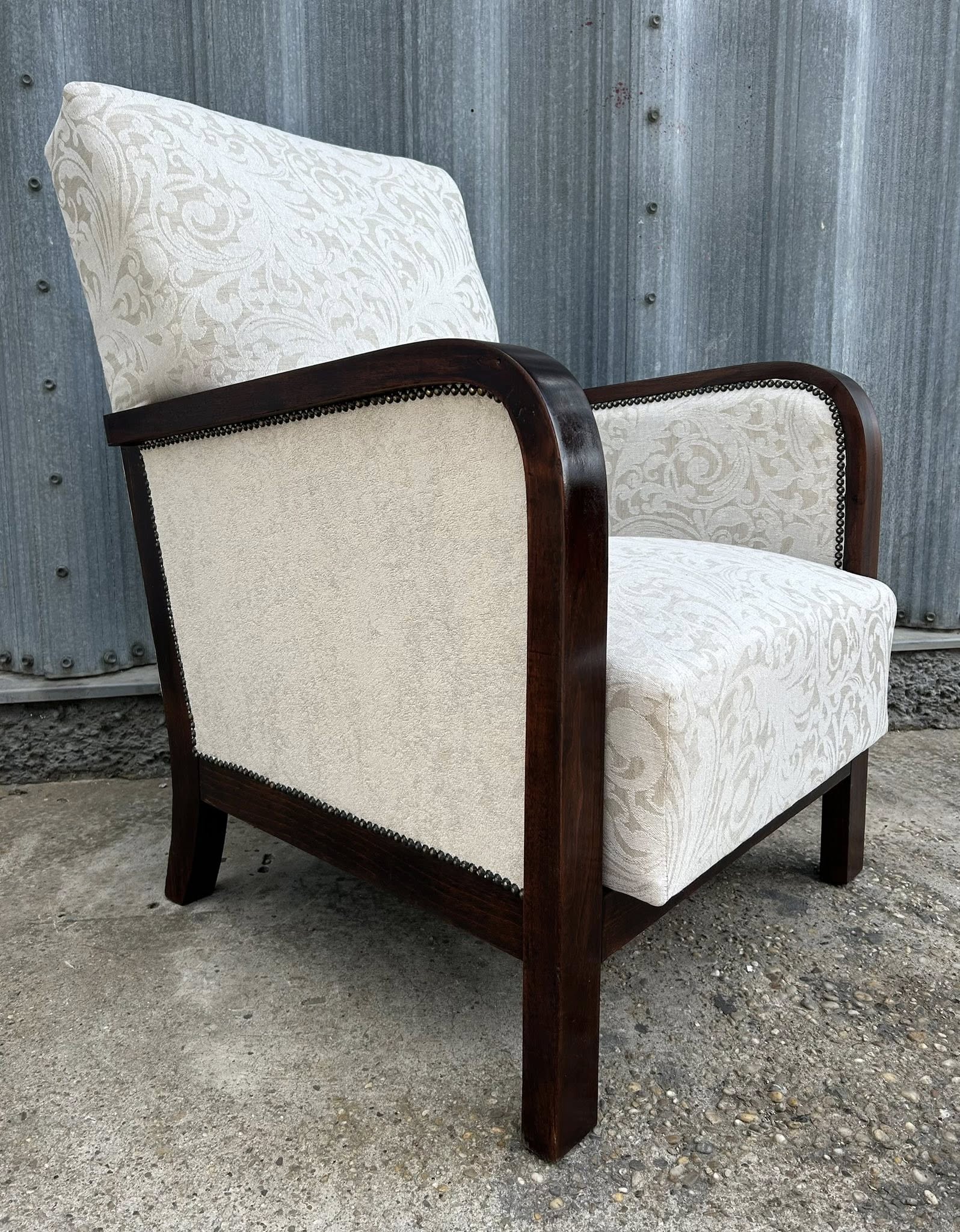 F126 - Art DECO kreslá po renovácii dreva a stability, s krásnou zachovalou pôvodnou látkou, v bezchybnom stave.