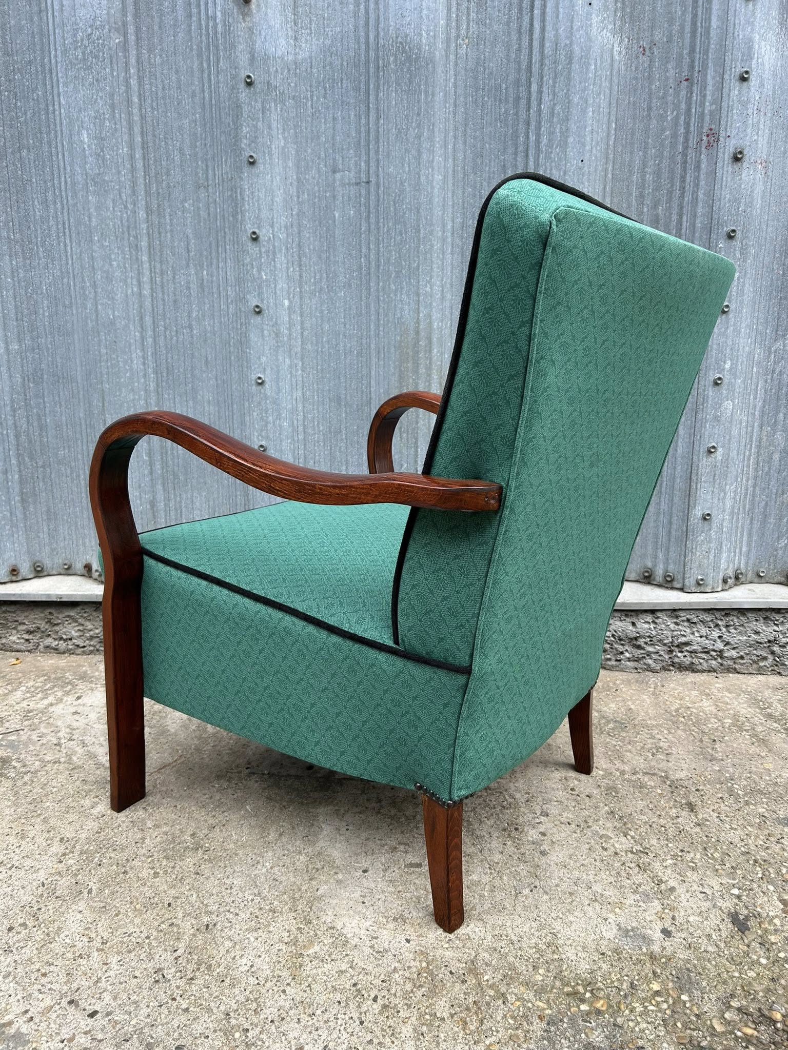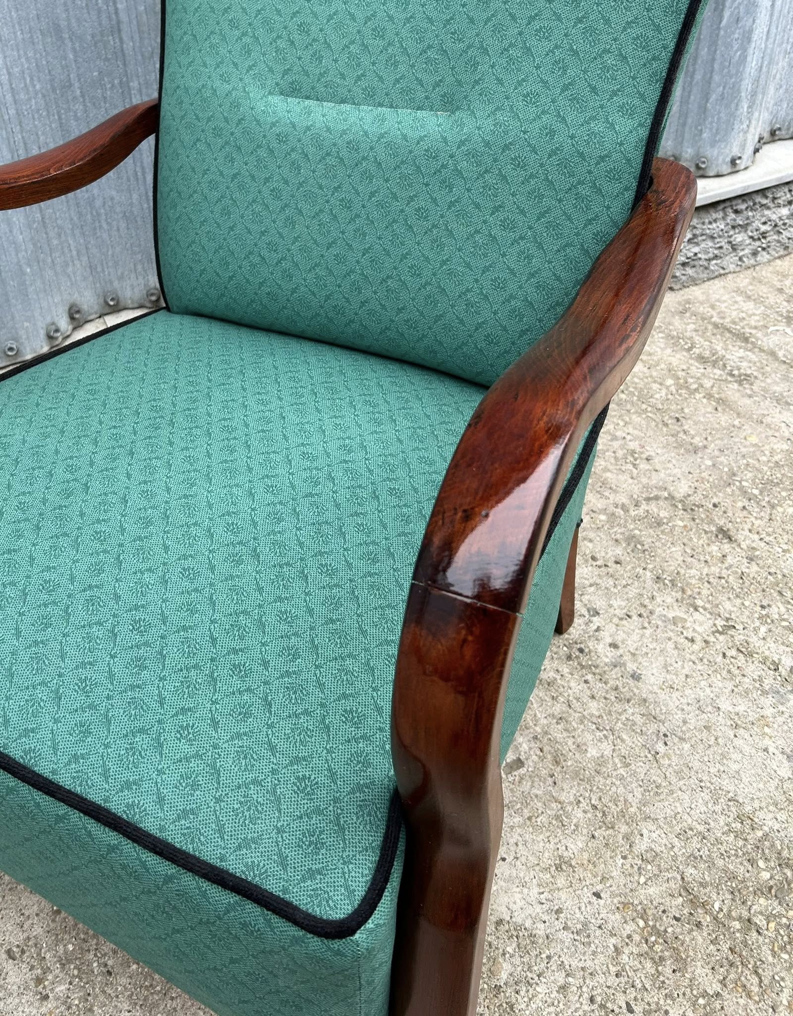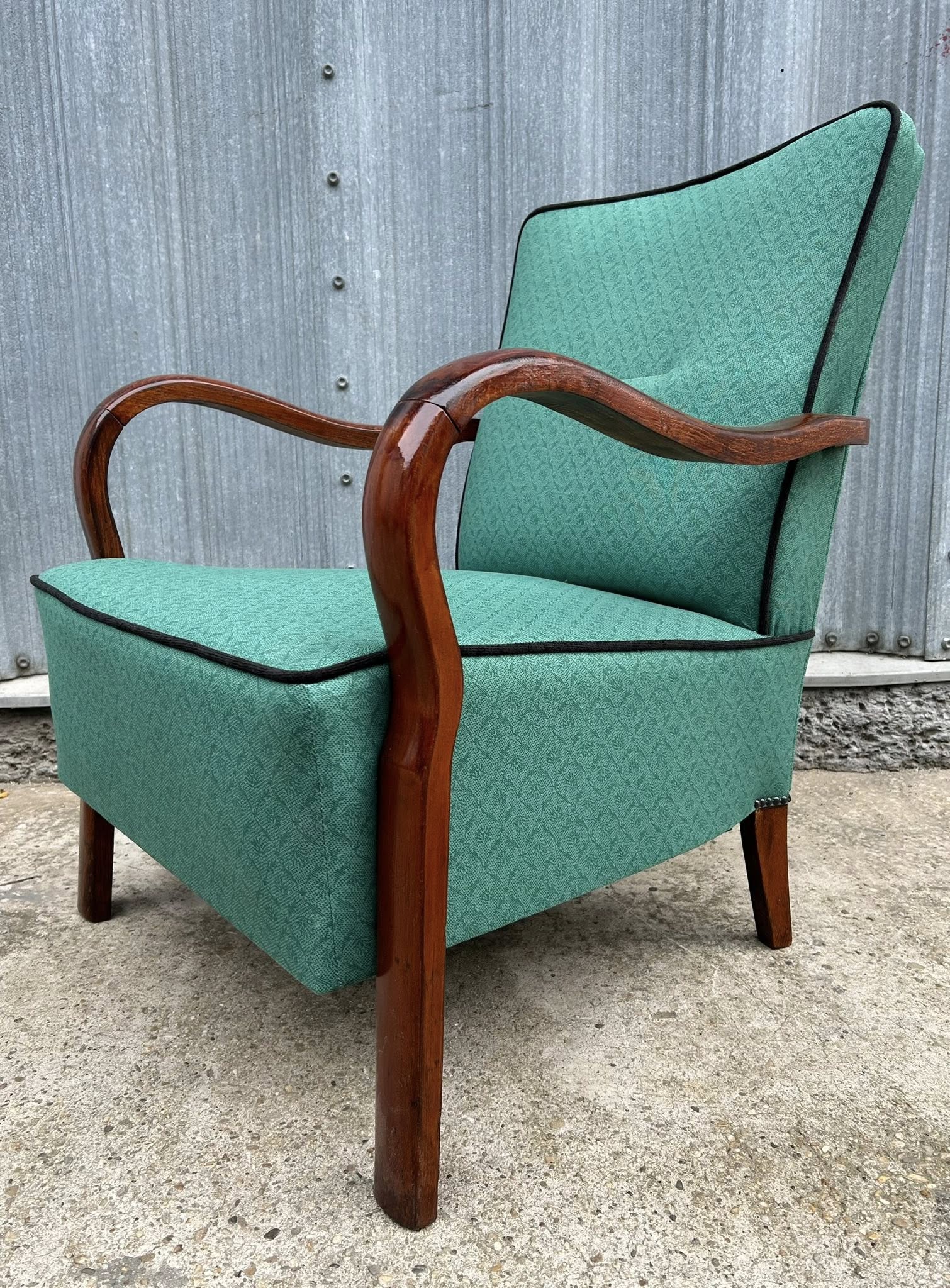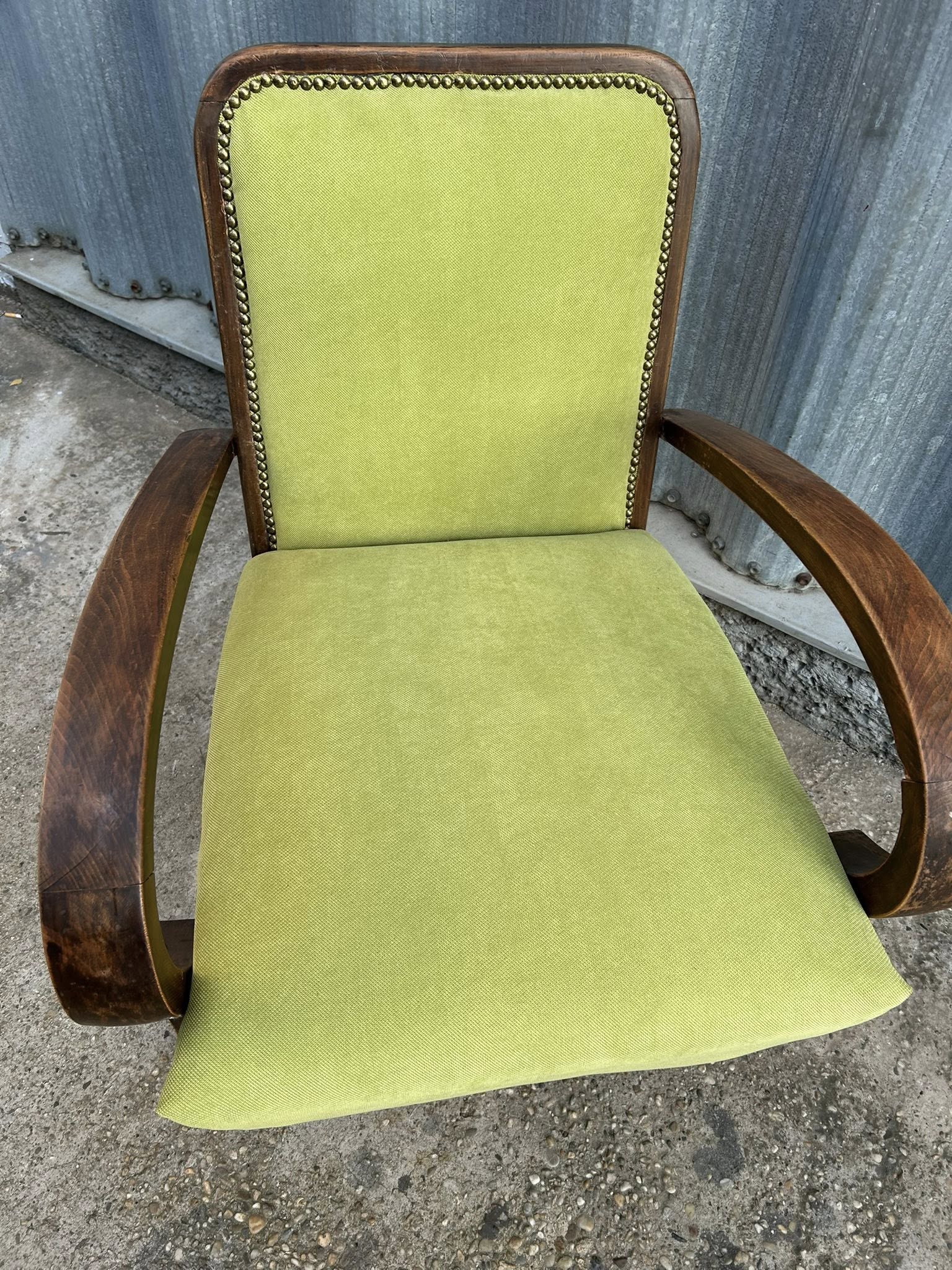F193 - Kreslo Art DECO - 1 kus kompletne zrenovované v krásnej zelenej farbe s ohýbanými podrúčkami. Cena 290€