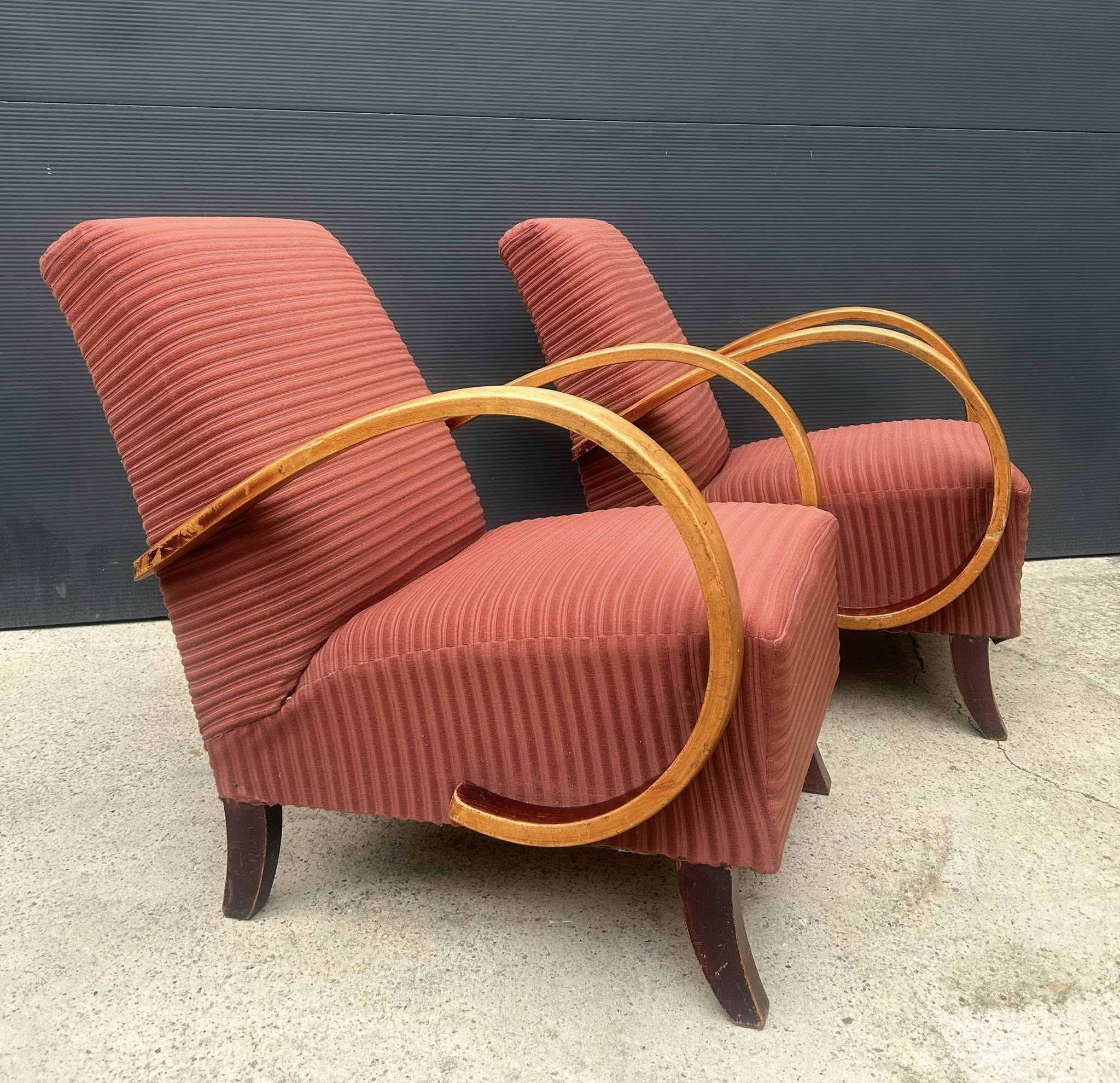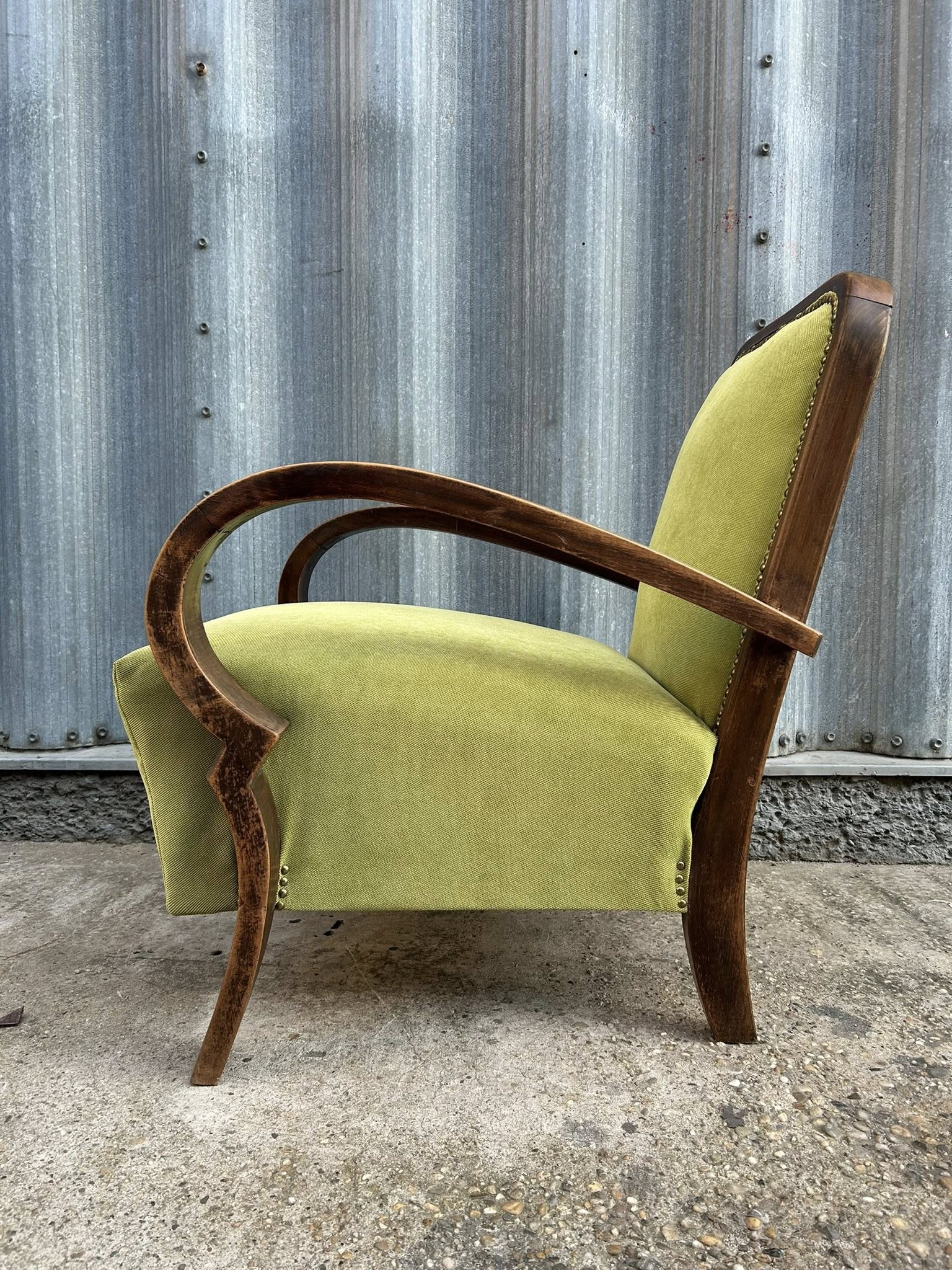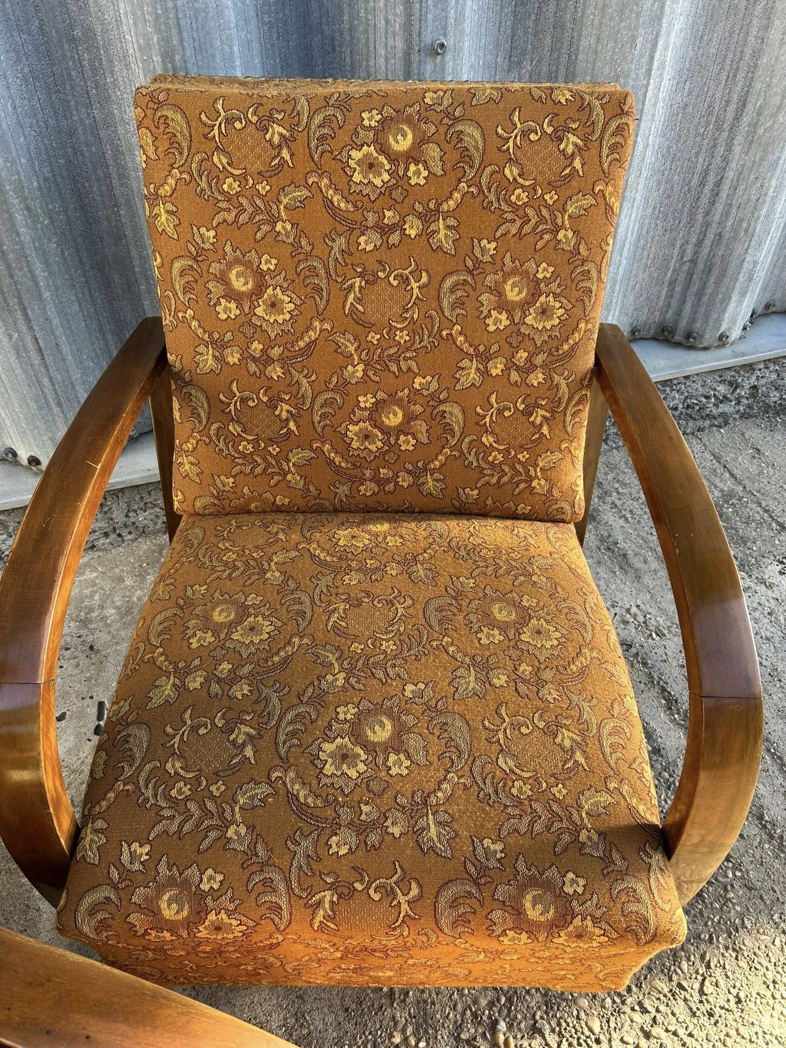 F190 - Art DECO kreslá v peknom bytovom stave s ohýbanými podrúčkami s dubového dreva s dobovým poťahom v pekných krivkách. 🌺🌸🌼 Cena 290€/kus