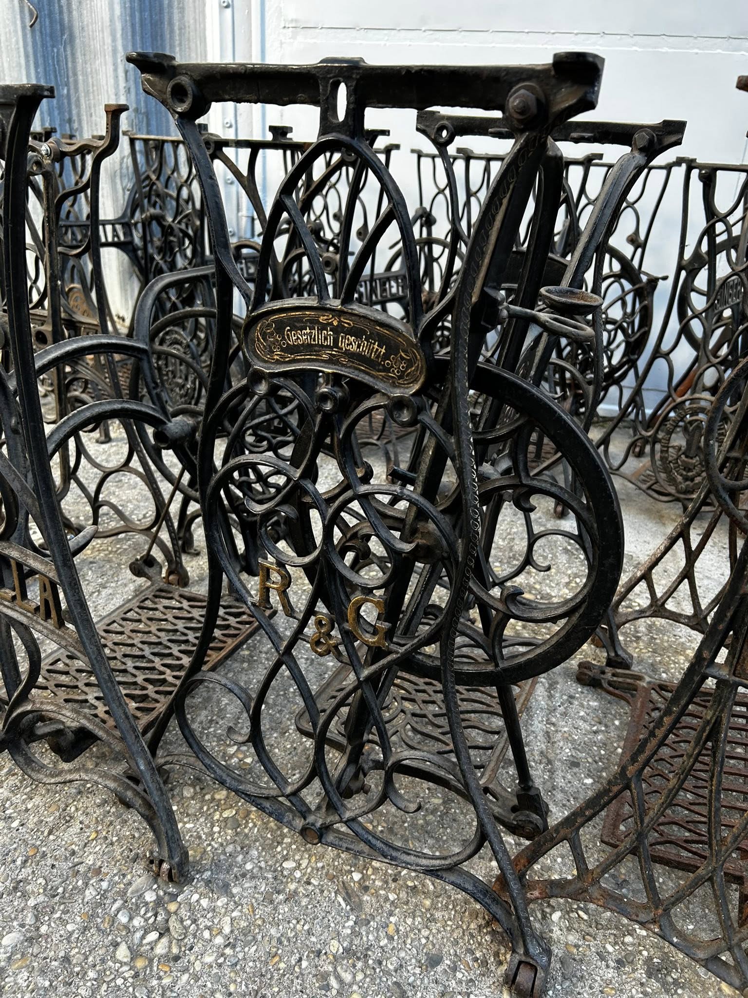 Podstavec zo šijacieho stroja značky: Singer, Verital... Viac kusov. Štýlová dekorácia. Vhodné do kaviarne, prevádzky ako stolík alebo lavička.