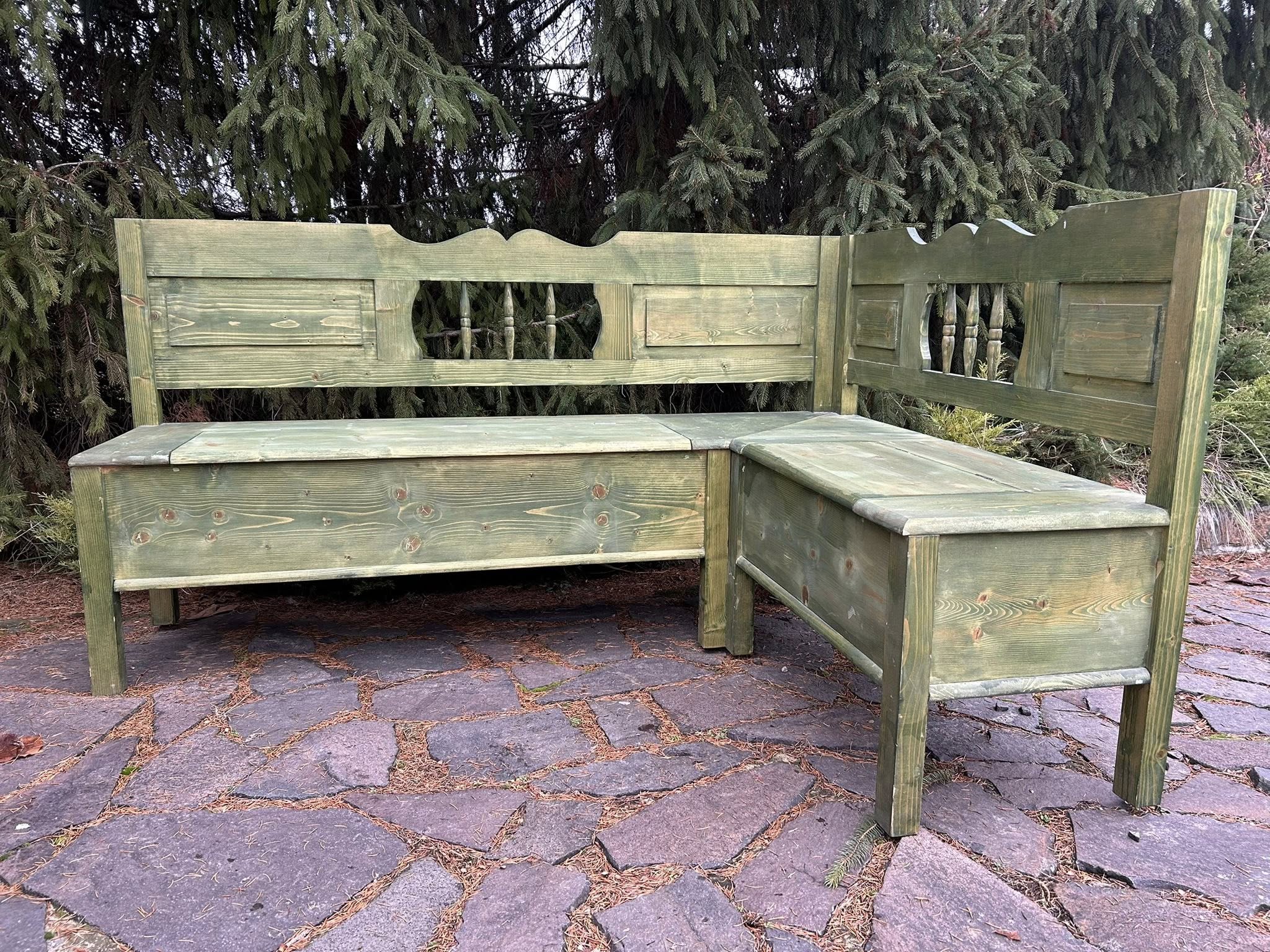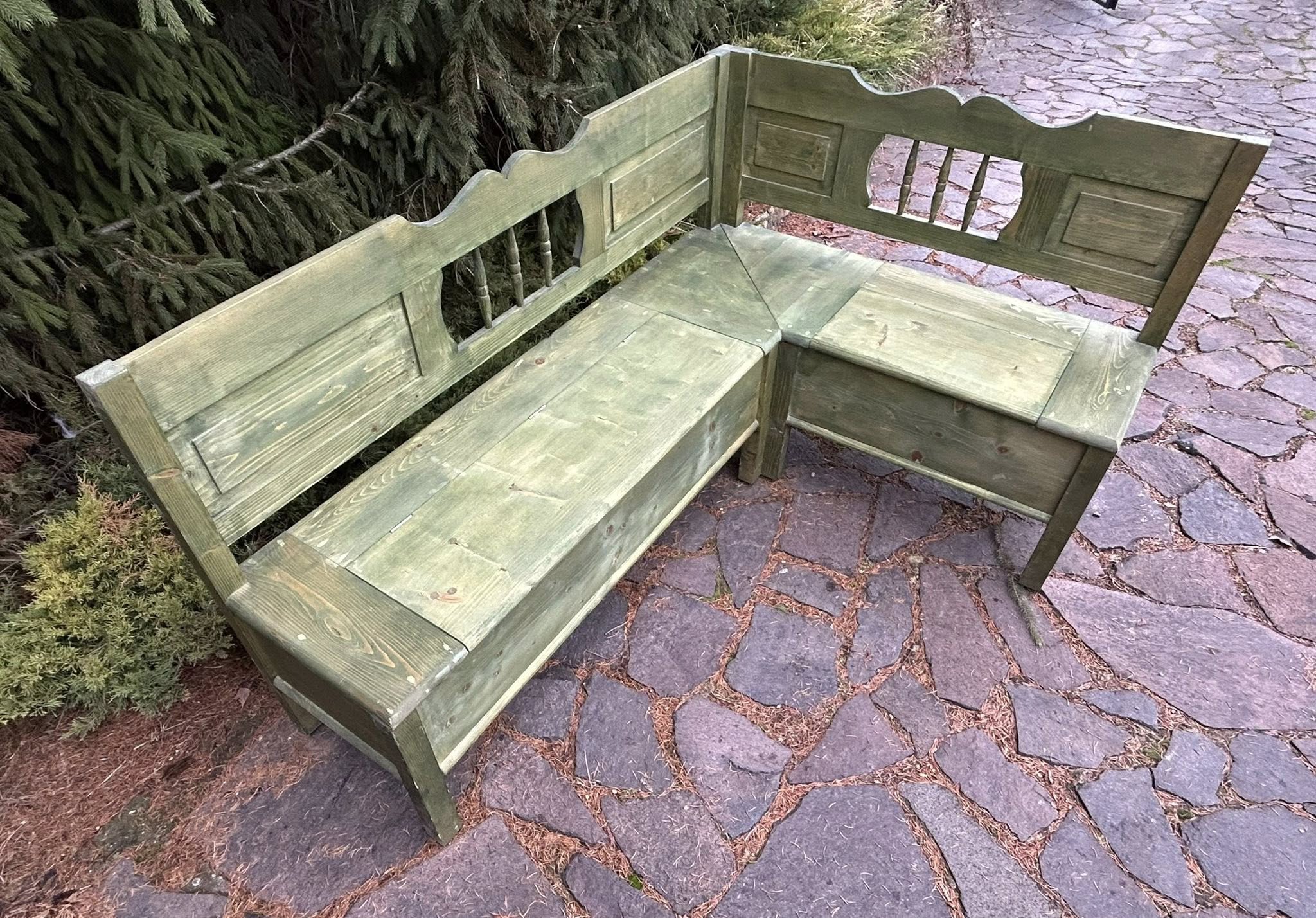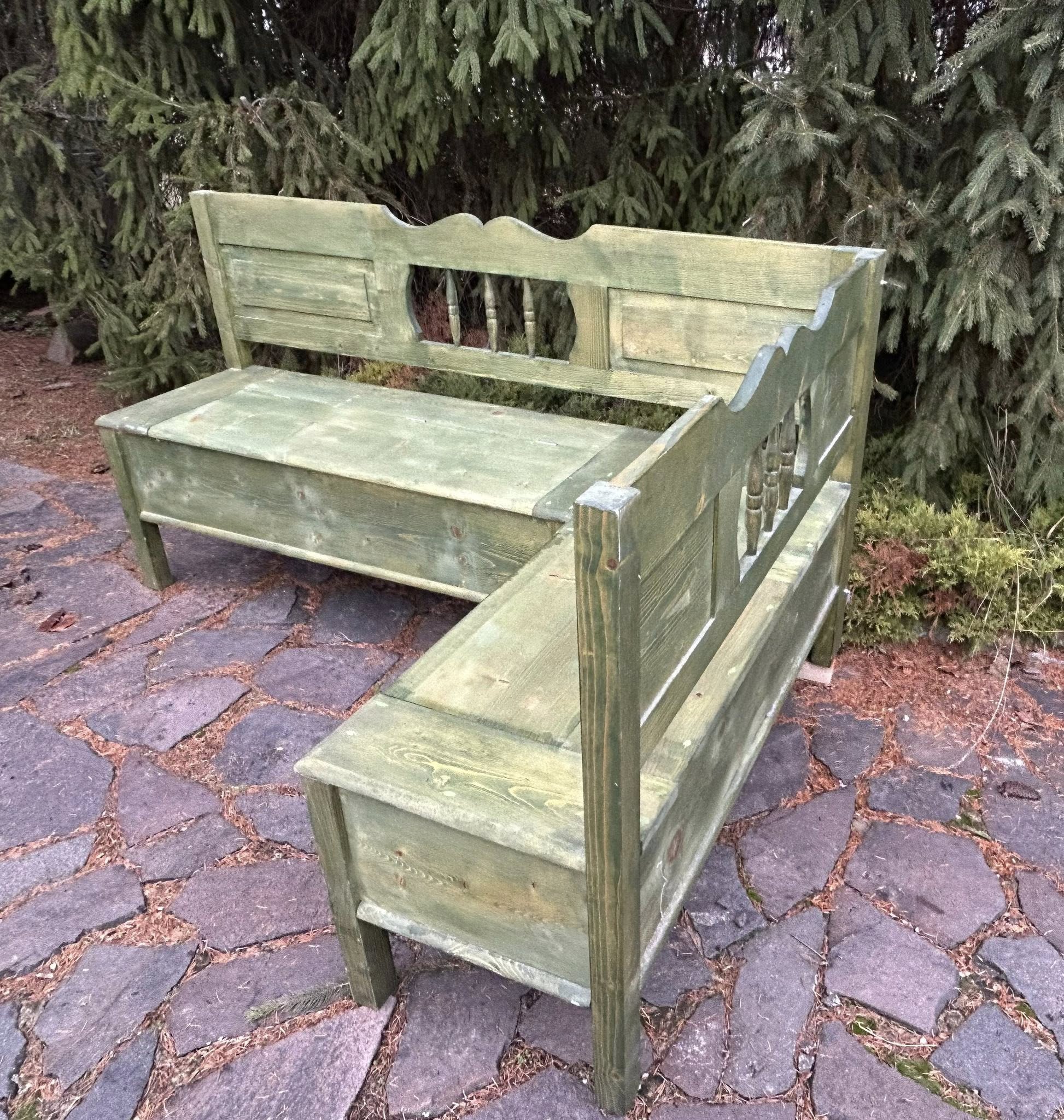 Rohová vidiecka lavica v bezchybnom stave, stabilná a silná, vhodná na chalupu, terasu, letnú kuchyňou atď.