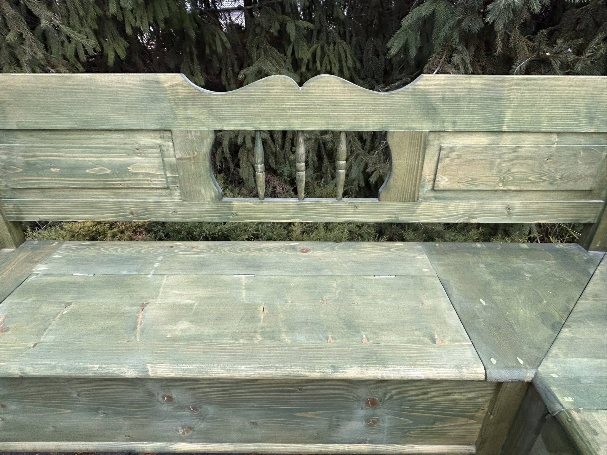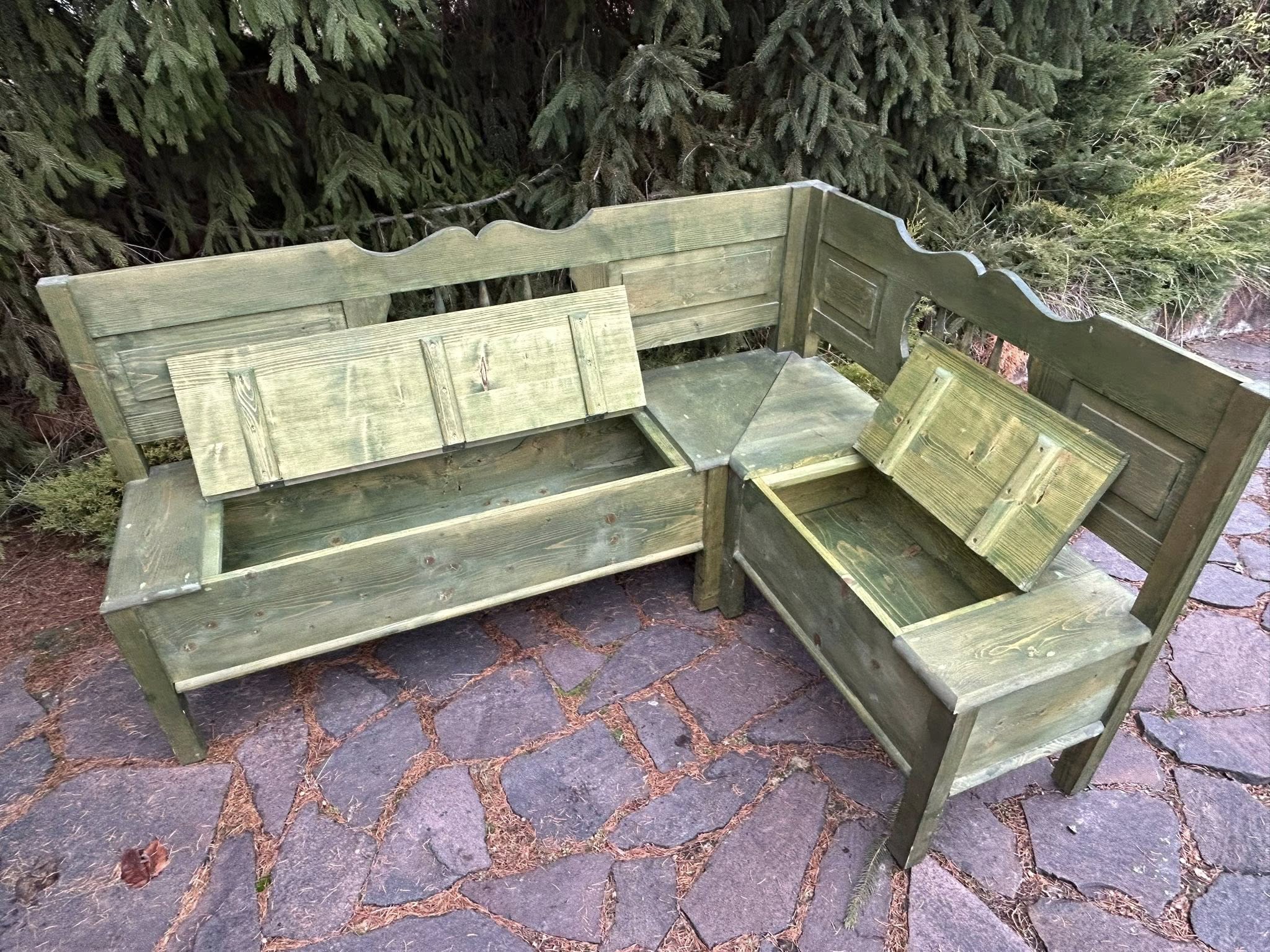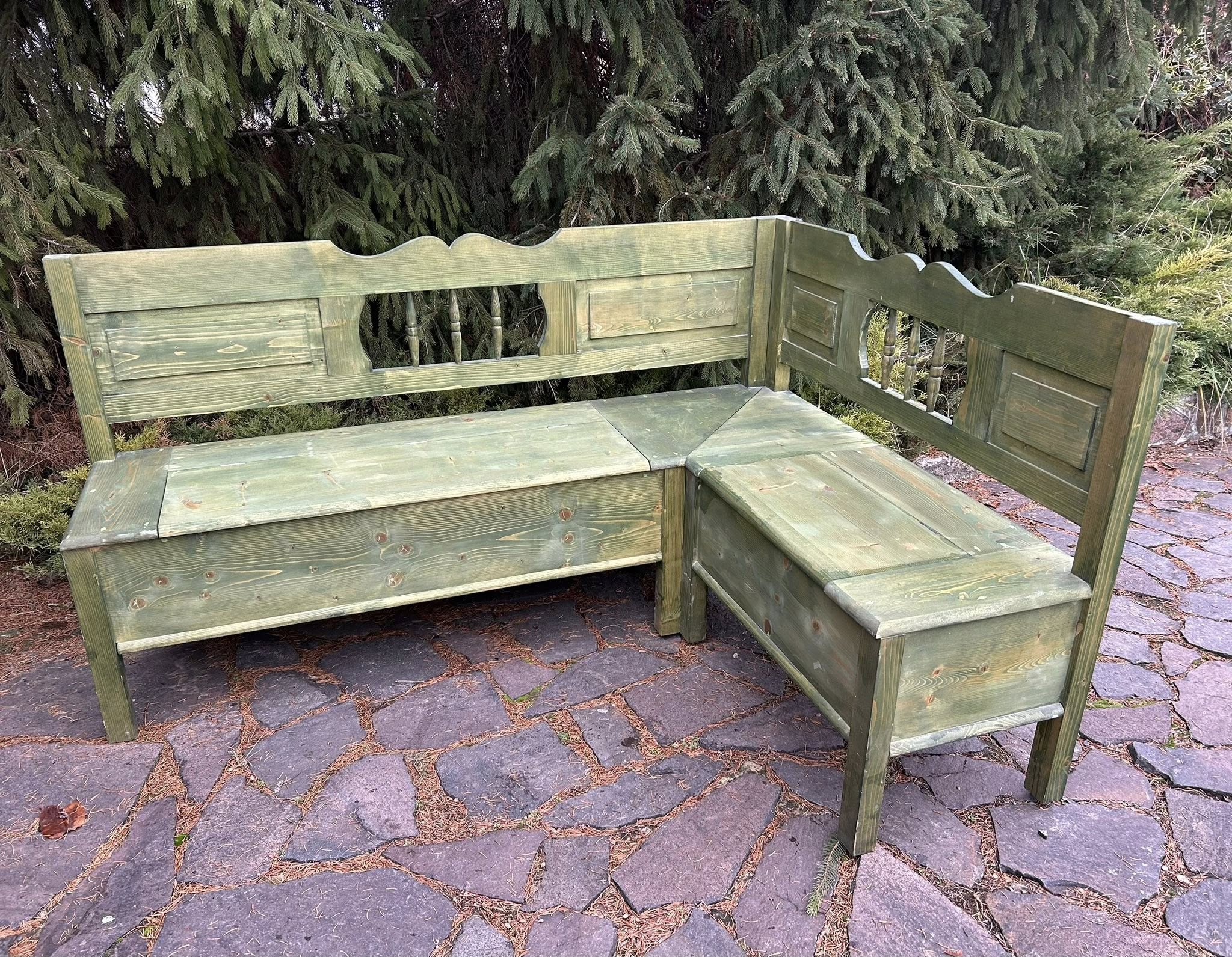 Rohová vidiecka lavica v bezchybnom stave, stabilná a silná, vhodná na chalupu, terasu, letnú kuchyňou atď.