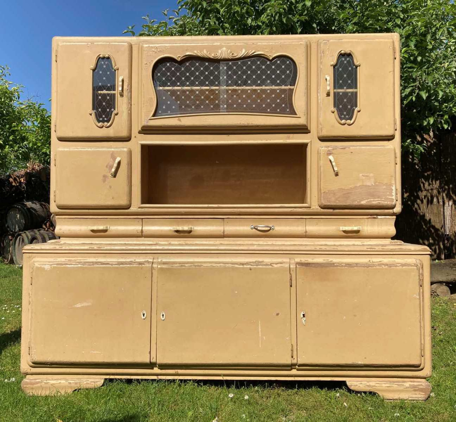 K45 - Zriedkavý kredenc v provensálskom štýle ideálny na ďalšiu úpravu, najlepšie maľovanie s patinou, pochádzajúci z francúzskeho vidieka.