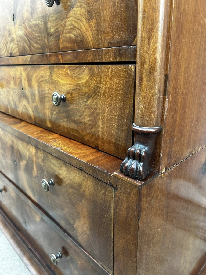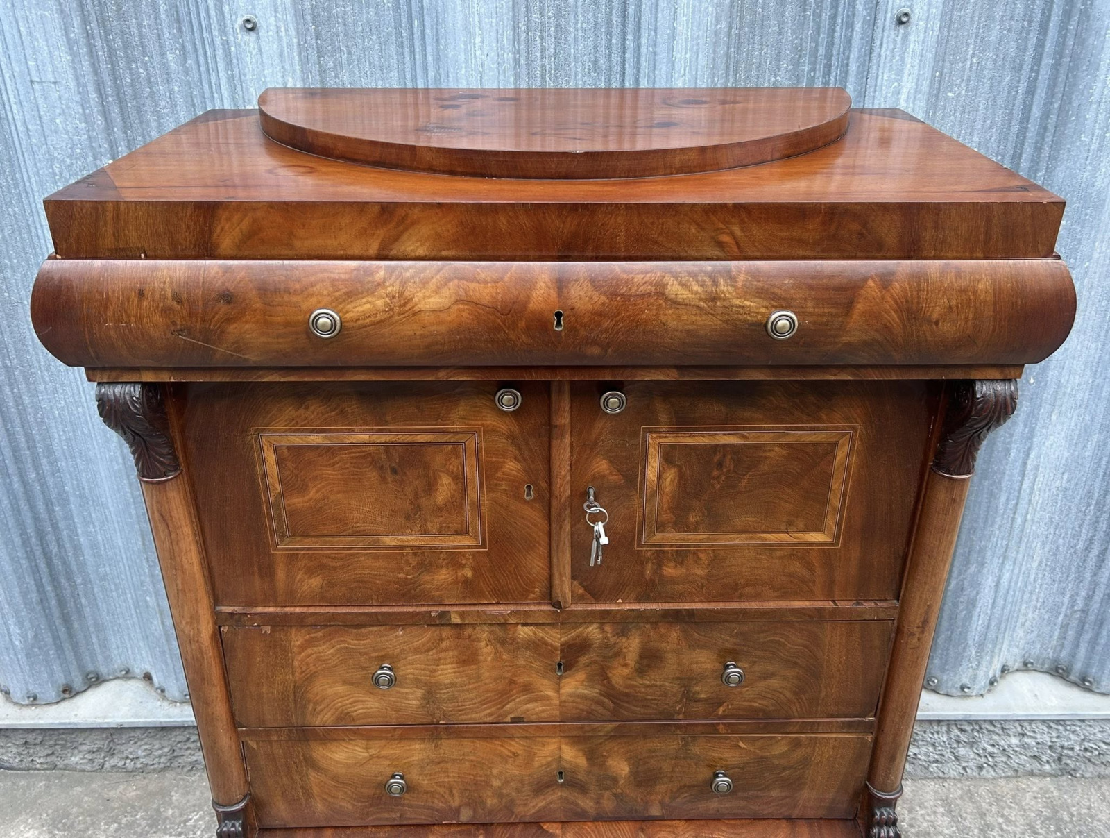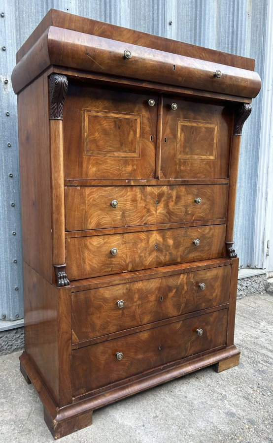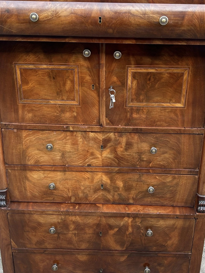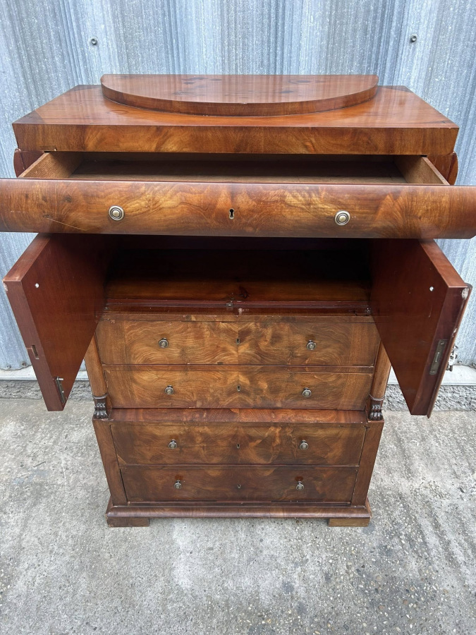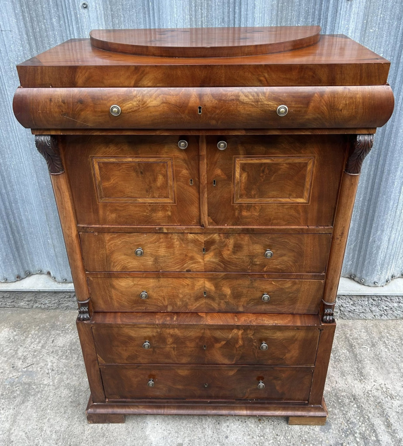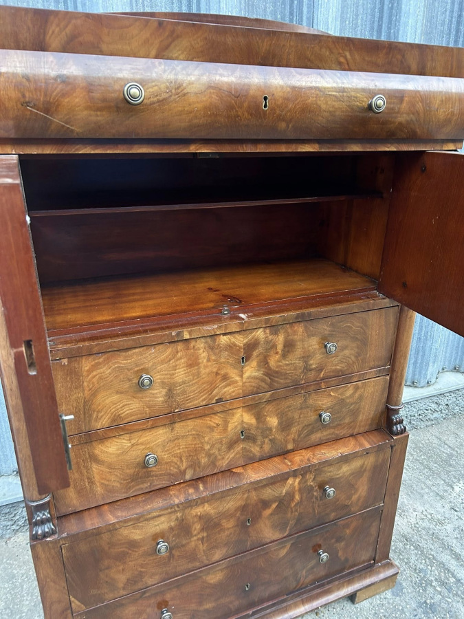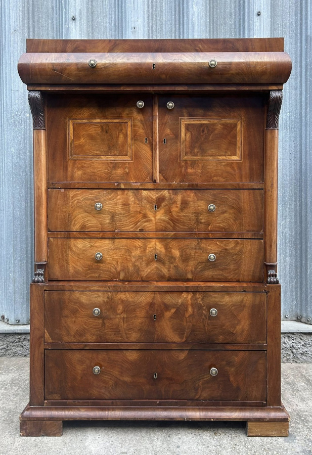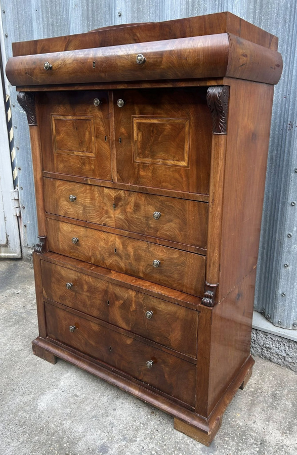 Kabinet / sekretár / komoda - plno-stĺpový zriedkavý kus. V krásnej orechovej dyhe! Pekný bytový stav.