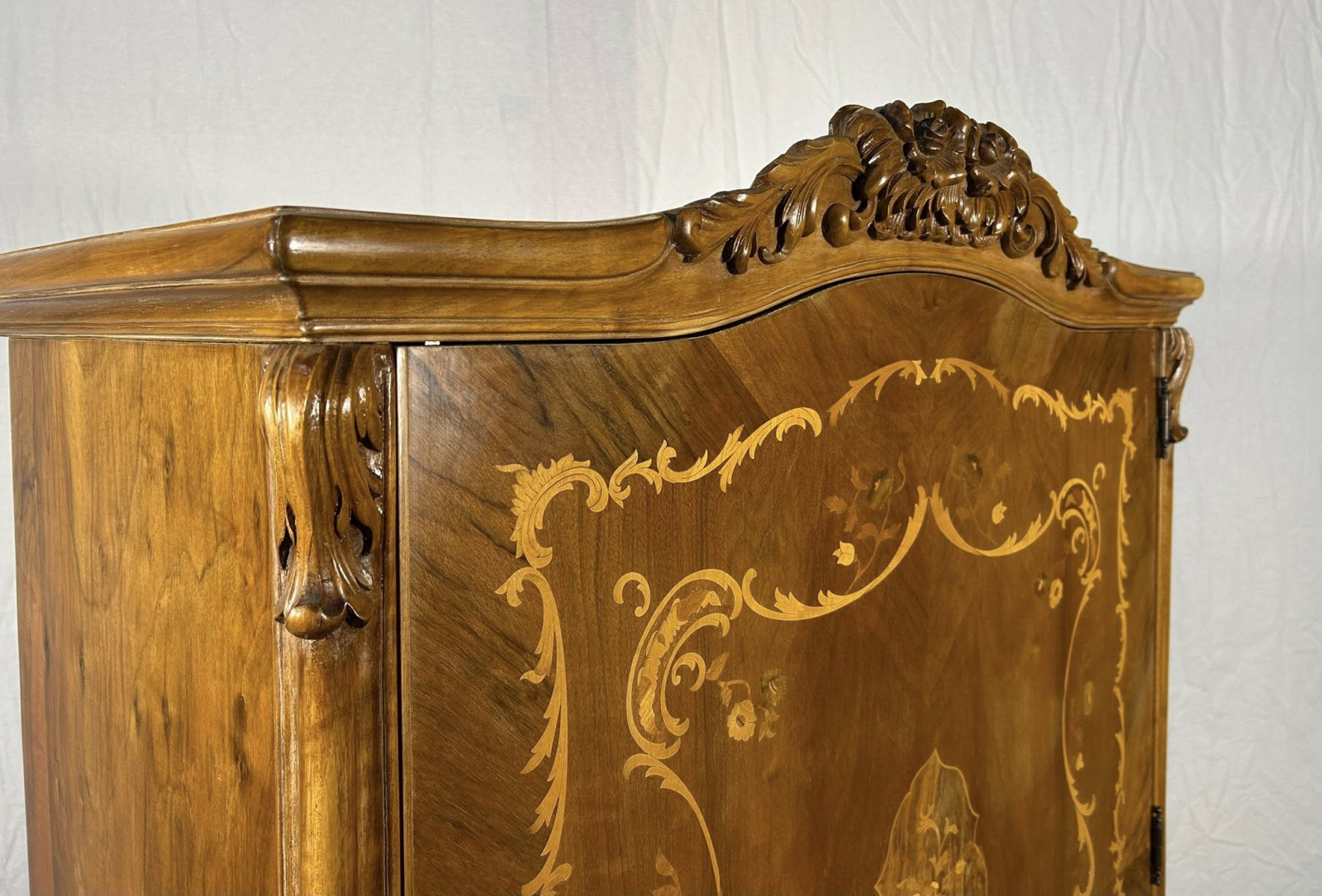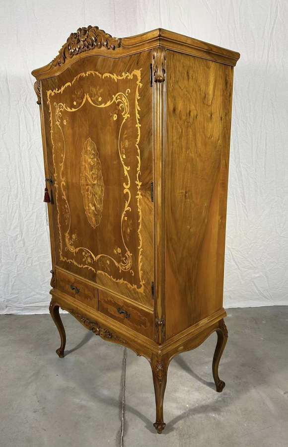Neobaroková skriňa / almara nazývaná aj ako Luis XV. S bohatou intarziou na dverách, v bezchybnom stave. Veľmi pekný kus v zriedkavom vyhotovení!!!