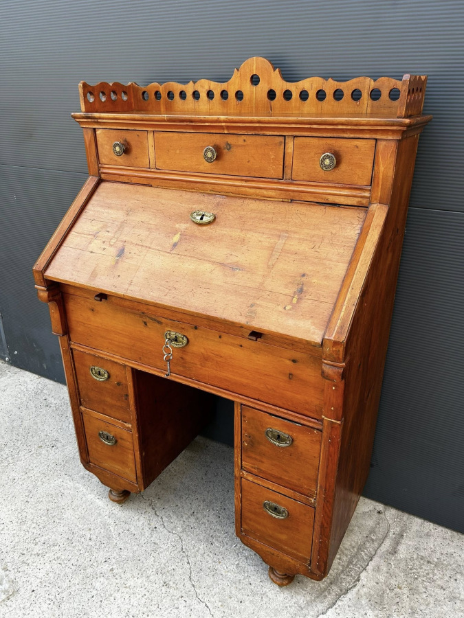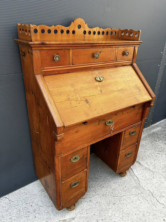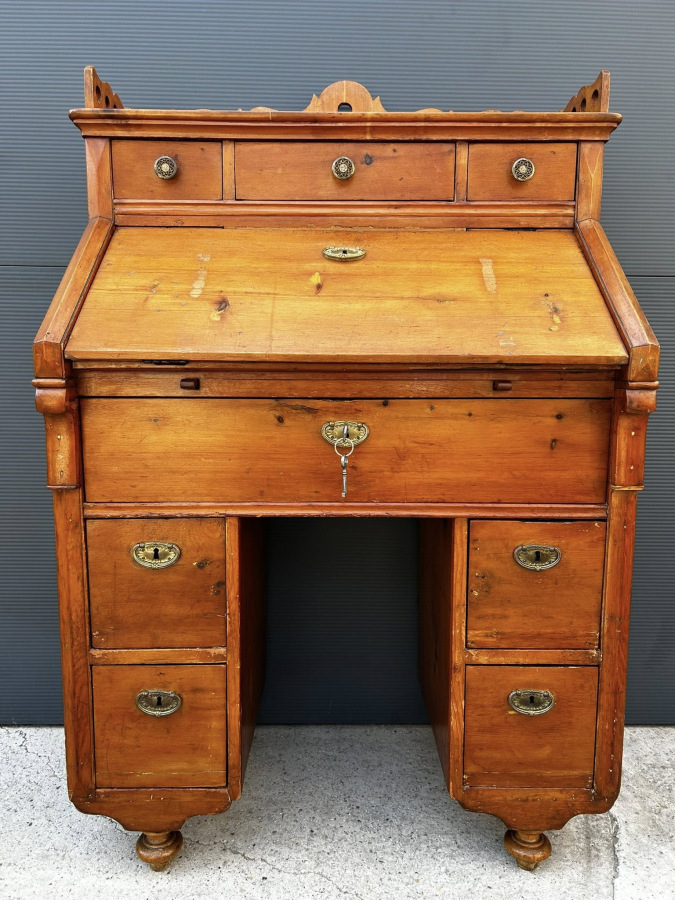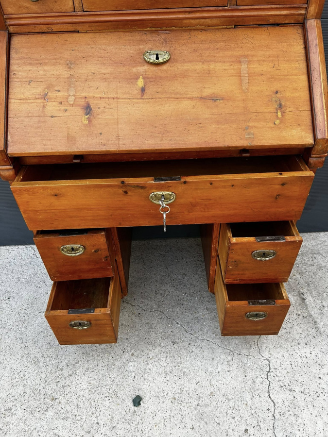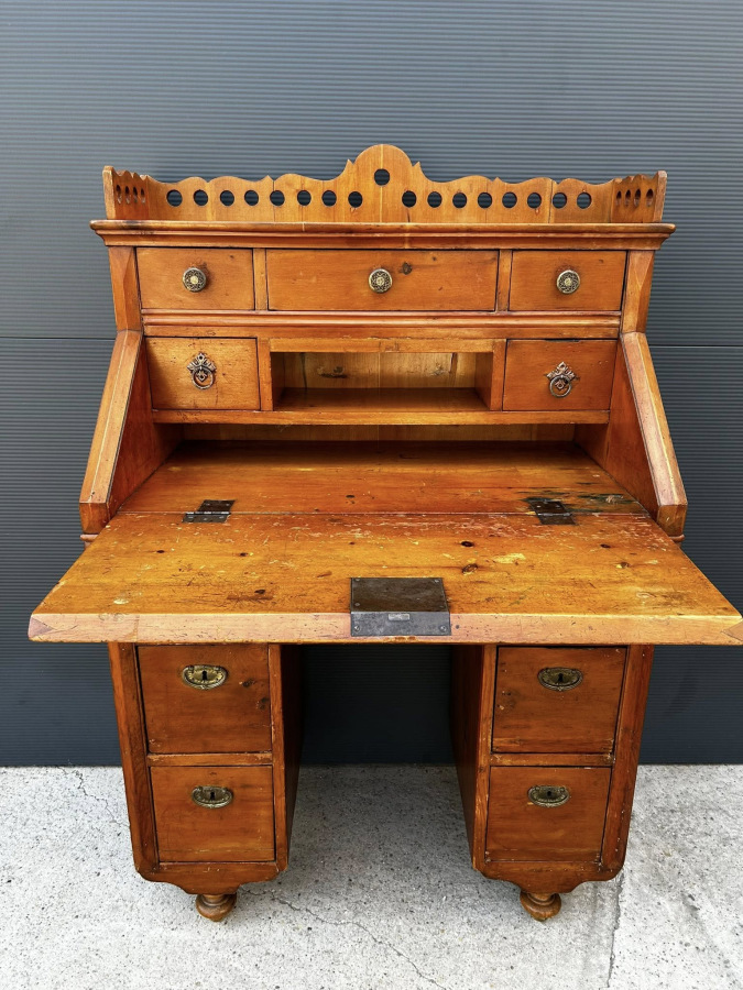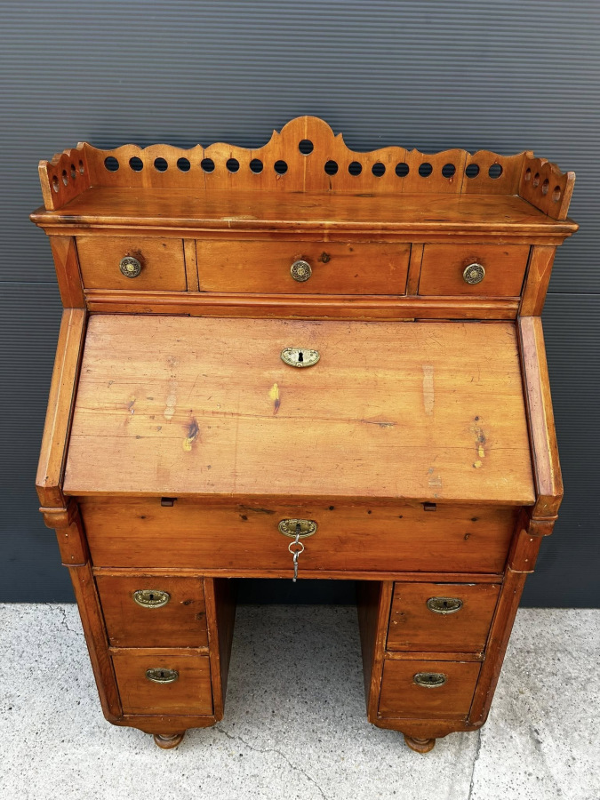 Písací kabinet z mákkého dreva v kombinácii s čerešňový drevom! Veľmi zriedkavý kus nábytku vyrobený v roku 1882, v Budapešti, v malej manufaktúre mladými tovarišmi a účňami! Nábytok je v perfektnom bytovom stave s pôvodnou povrchovou úpravou a svojou okúzľujúcou patinou!!! Zberateľský kus!!!