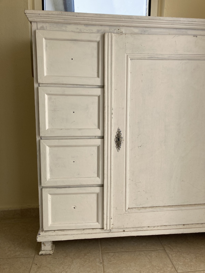 PS10 - Chlebník / potravinová skrinka v bytovom stave so 4 šuflíkmi.