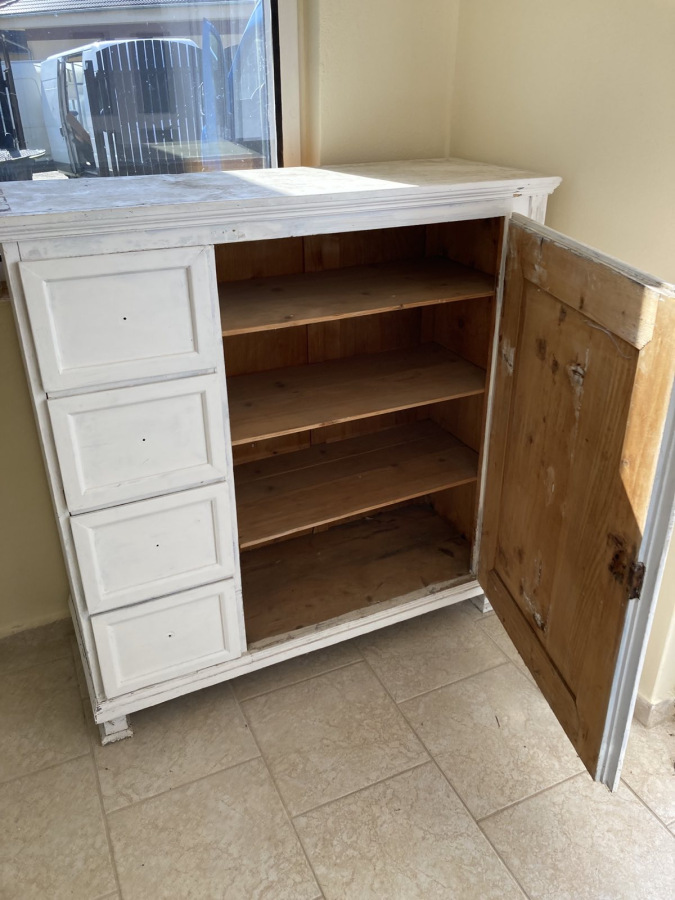 PS10 - Chlebník / potravinová skrinka v bytovom stave so 4 šuflíkmi. Cena 480€