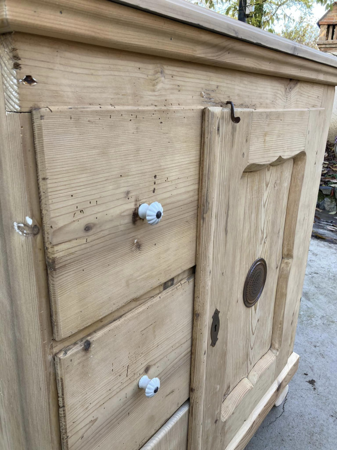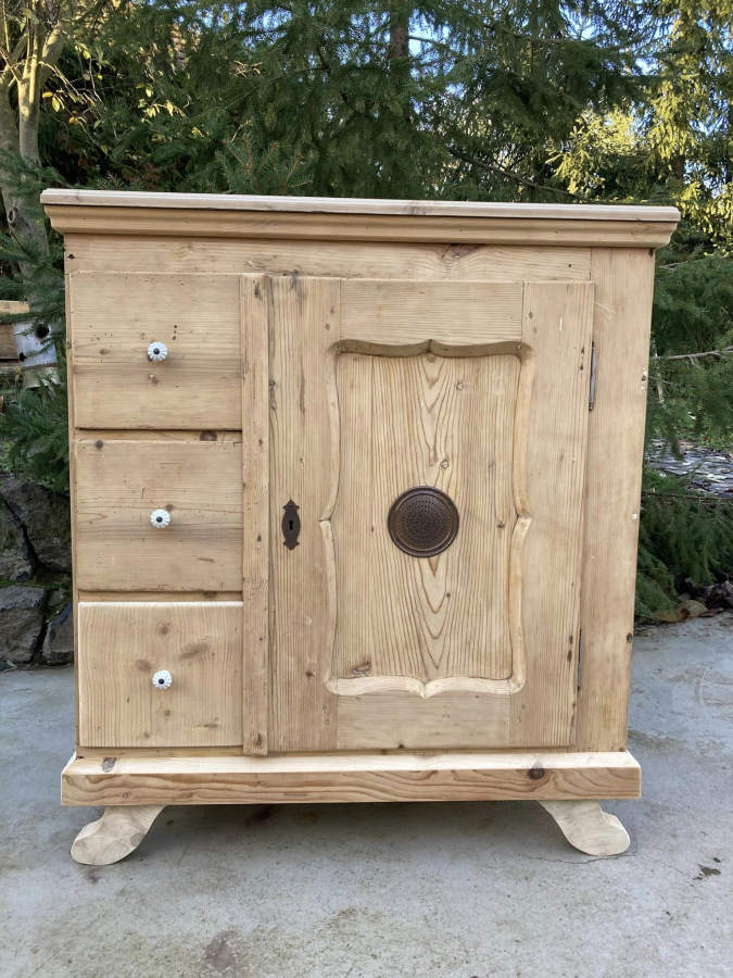 PS16 - Dobová potravinová skrinka / chlebník v zreštaurovanom stave, zámerne zachovalé známky staroby.