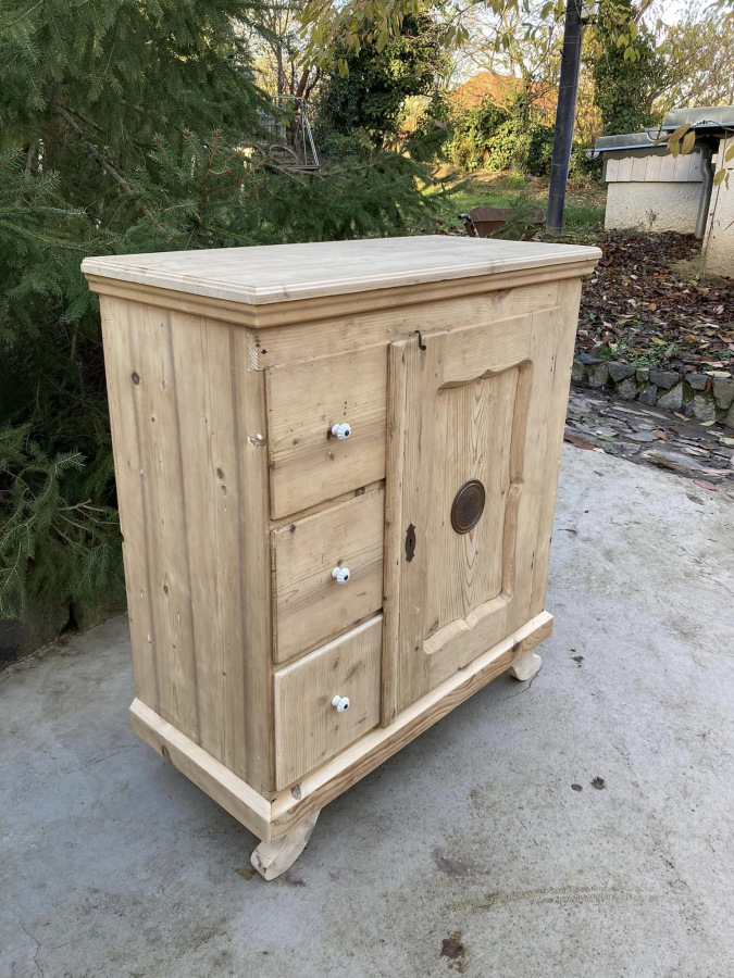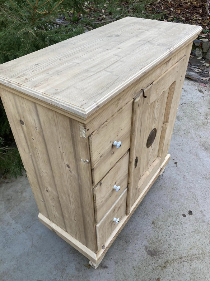 PS16 - Dobová potravinová skrinka / chlebník v zreštaurovanom stave. - Cena 480€
