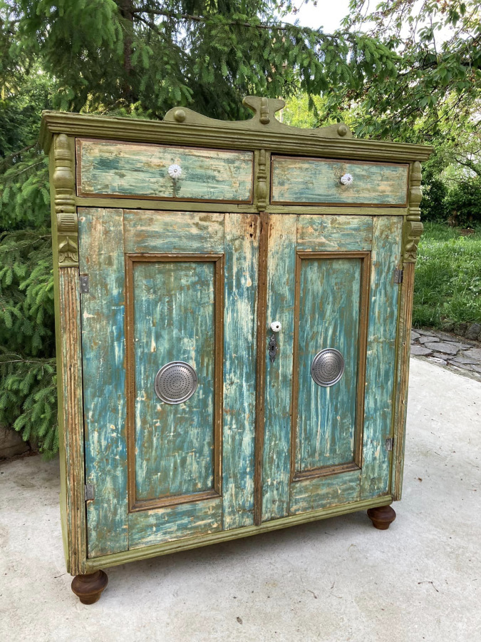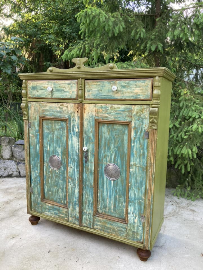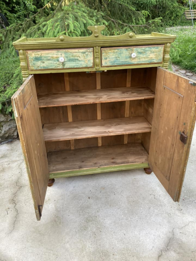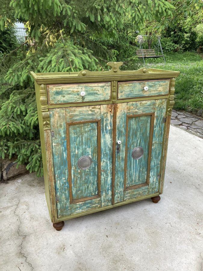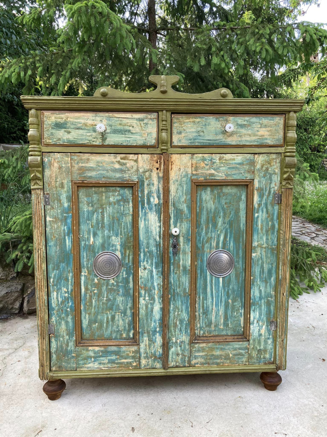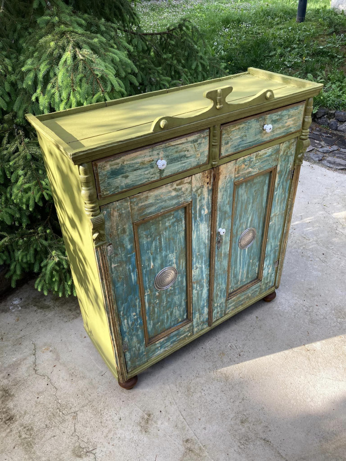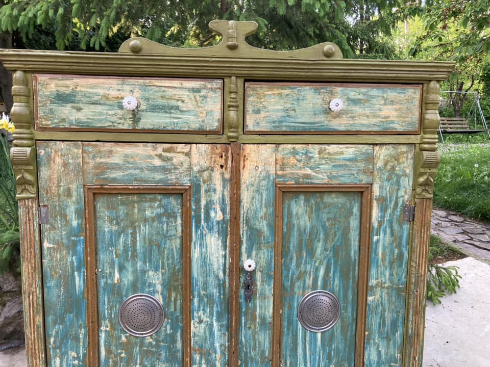 PS19 - potravinová skr. / chlebník (1910), so šuflíkmi a množstvom odkladacieho priestoru. So zámerne zachovanými známkami staroby.