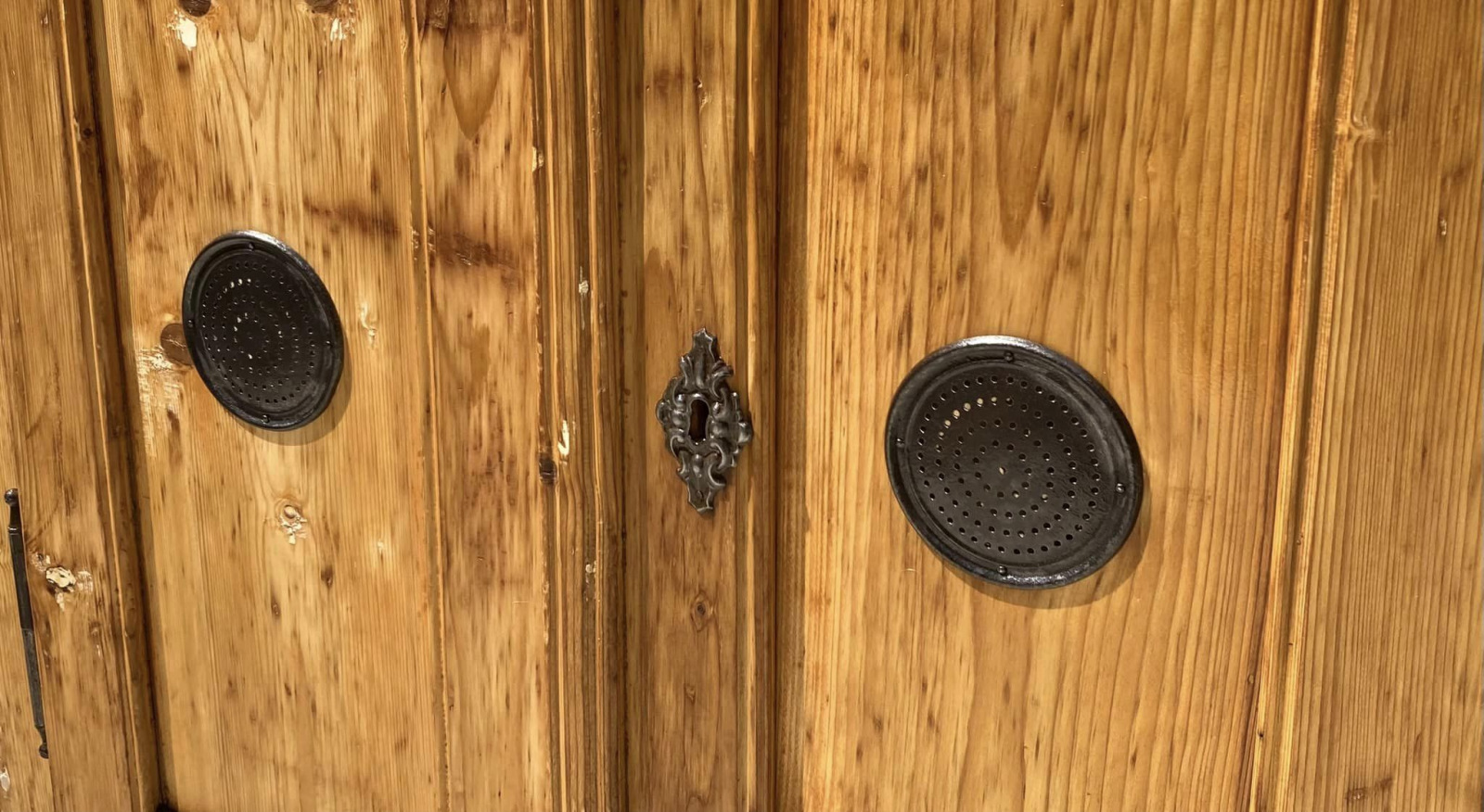 PS20 - Potravinová skrinka/dobová z roku 1880. Zámerne zachované známky staroby. Komplet zreštaurovaná.