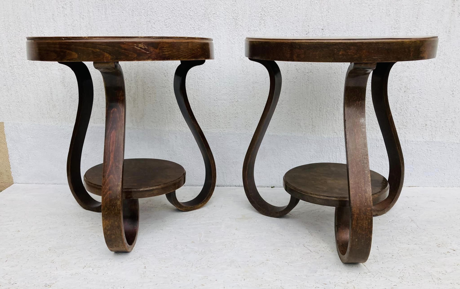 S22 - Ikonický art deco stolík “TULIPÁN” v tmavšom a svetlejšom prevedení. Elegantný výnimočný tvar v bezchybnom stave. V ponuke viac podobných stolíkov.