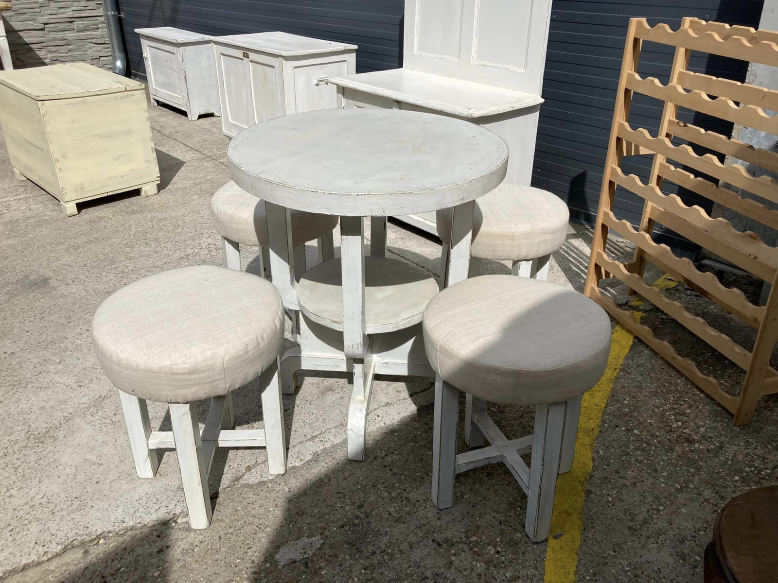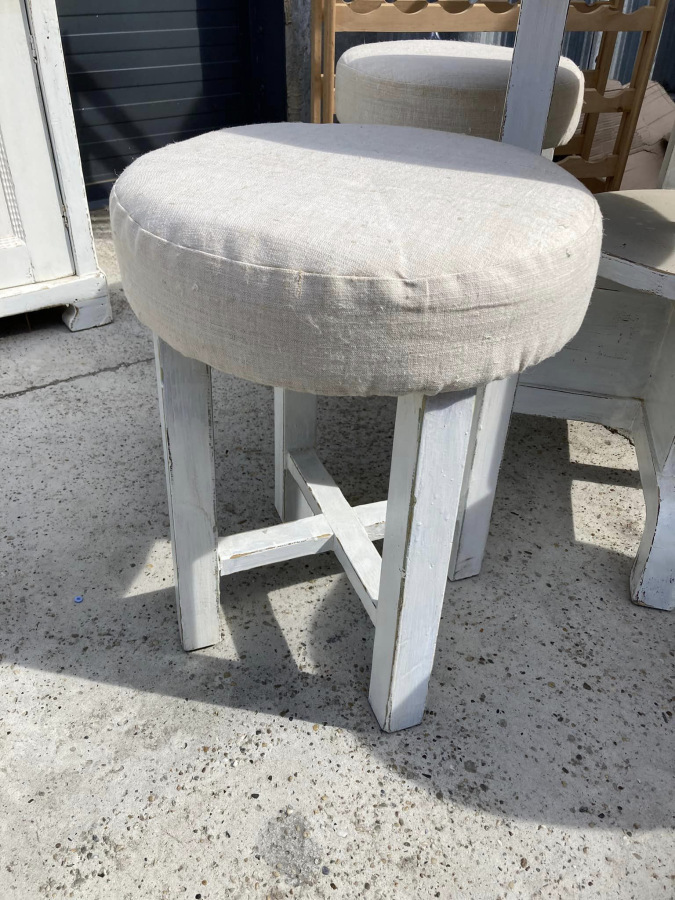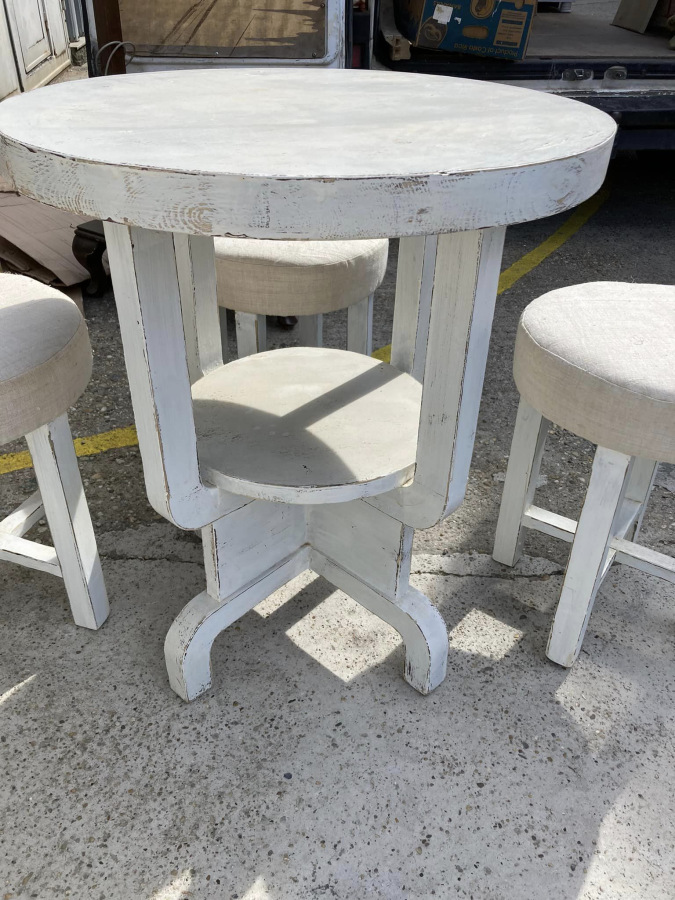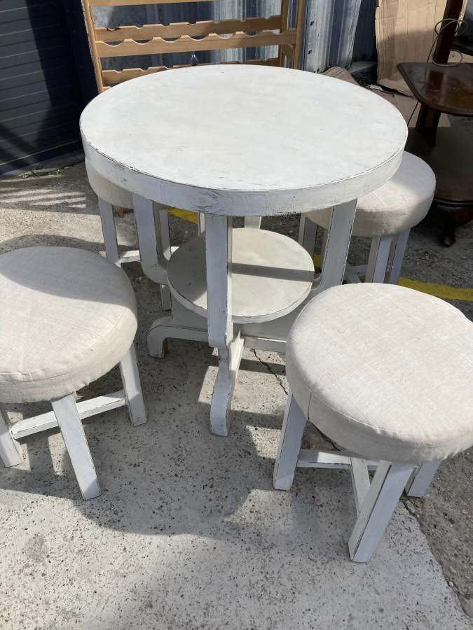 ST06 -Čajové sedenie (stolík + 4ks hokerlík) vo provensálskom štýle. Bytový stav.