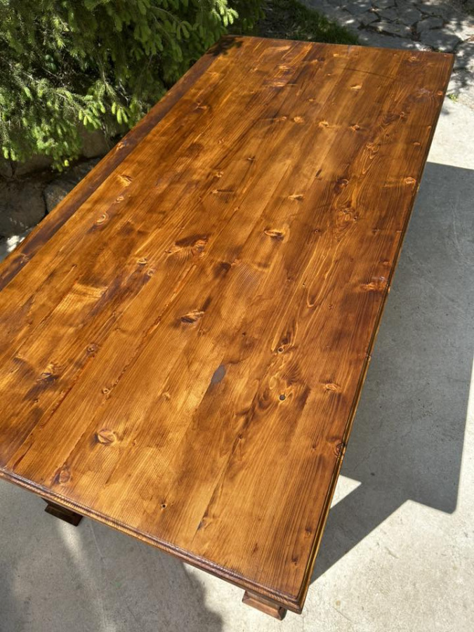 ST35 -Zabíjačkový stôl, zrenovovaný, pevný masívny bez škodcov!!! Pekná orechová farba s patinou! Ihneď k odberu.