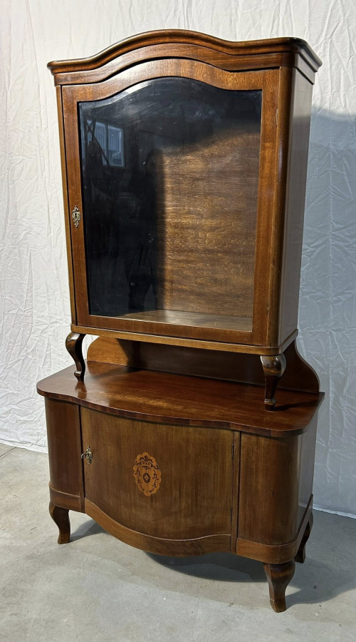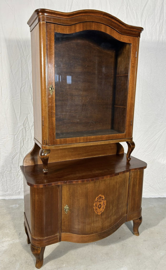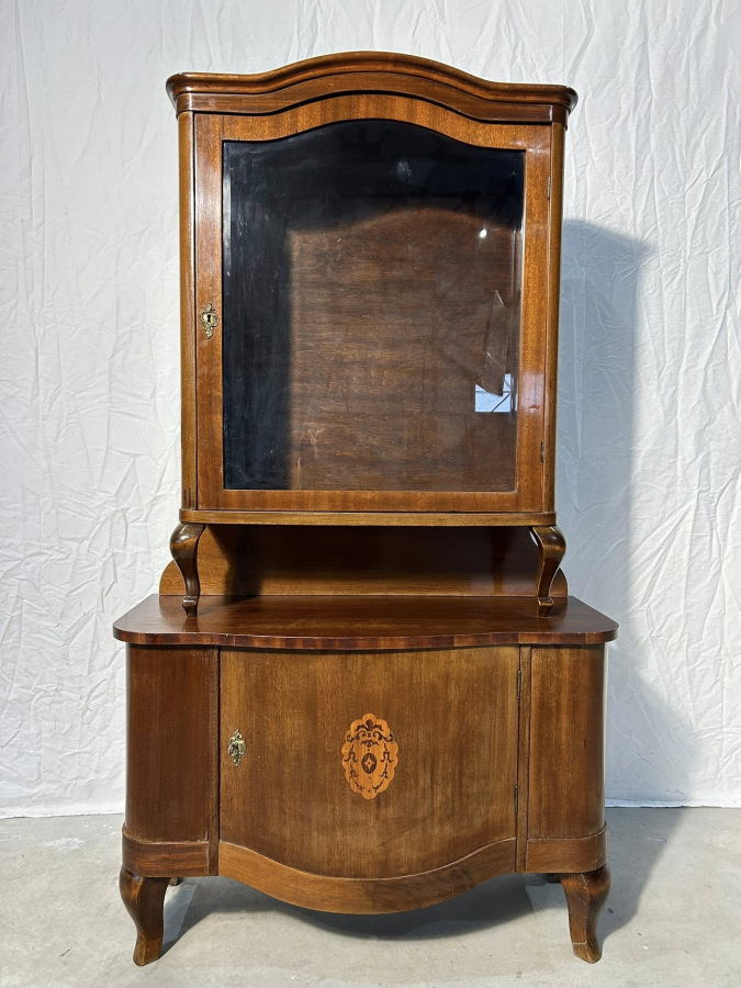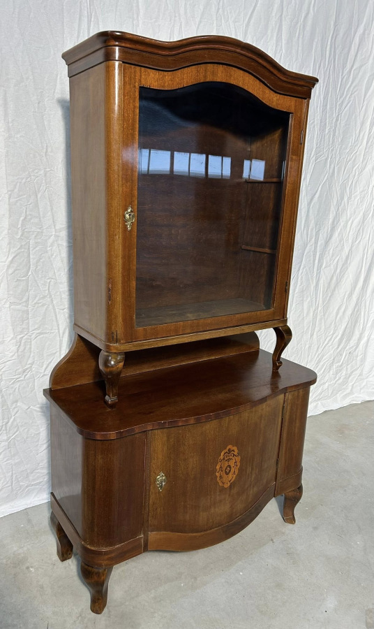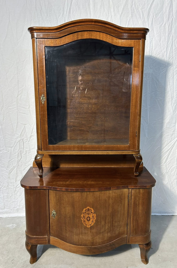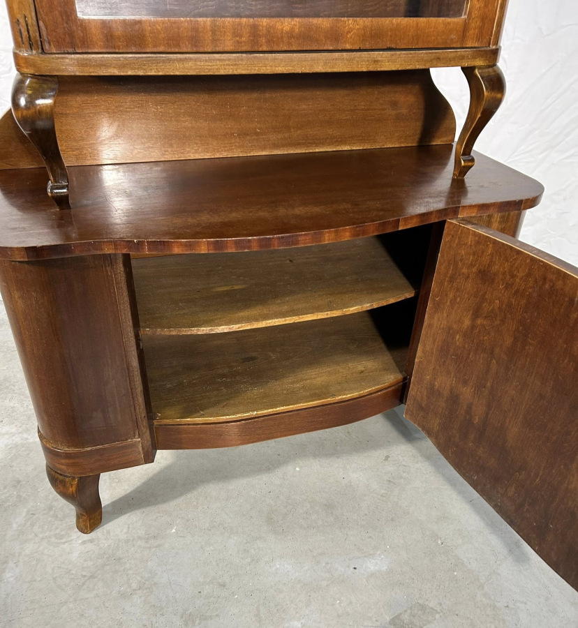Starožitná Prvorepubliková vitrína s úložným priestorom na spodnej časti, vo veľmi zaujímavom vyhotovení v neobarokovom štýle!
