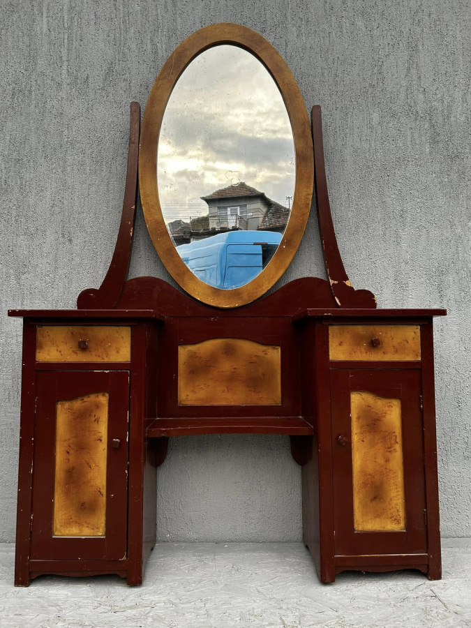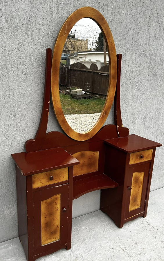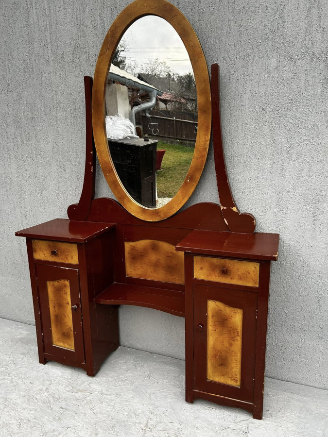 TS02 - Toaletný stolík so zrkadlom pred renováciou, v dobrom stave.