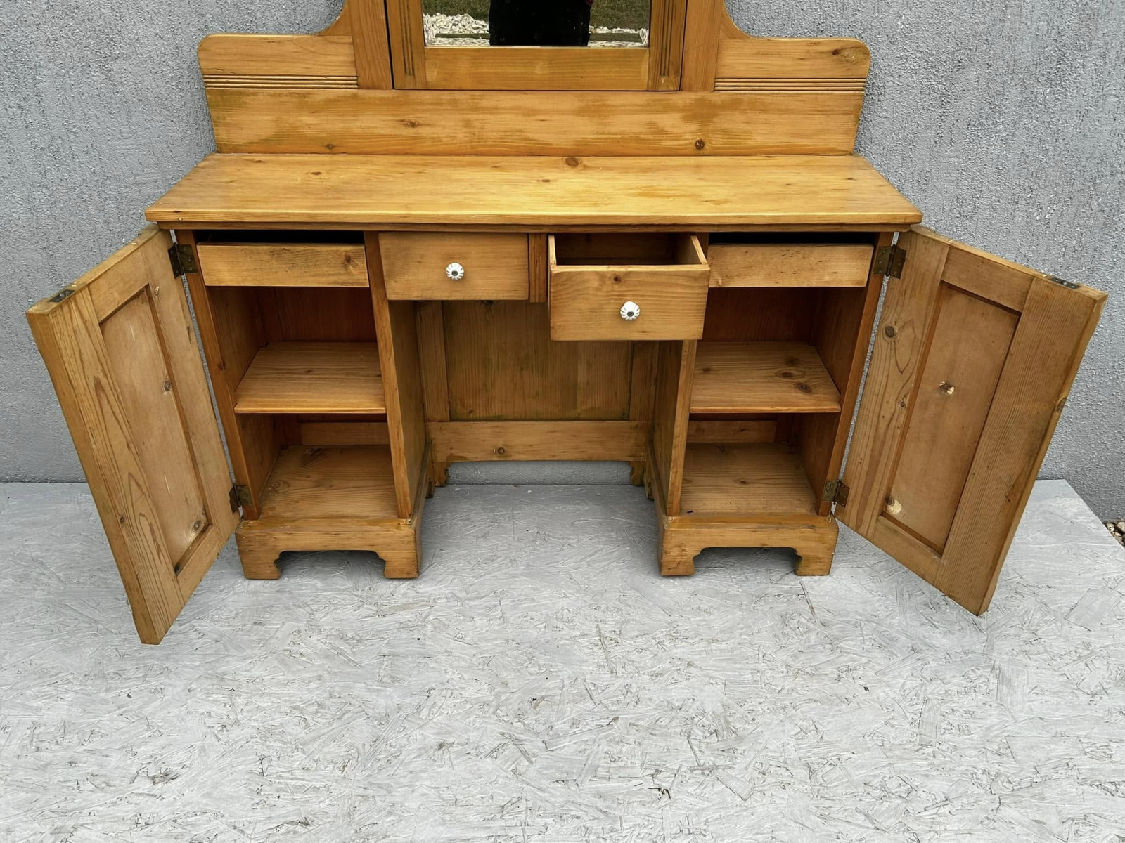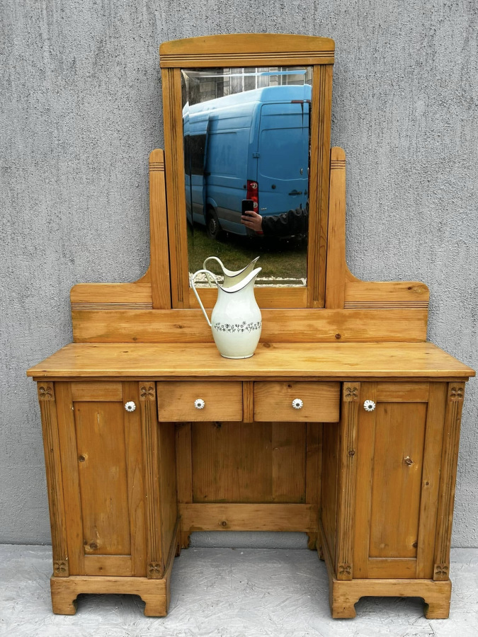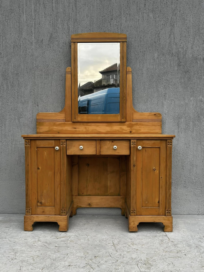 TS03 - Toaletný stolík so zrkadlom Vintage po renovácii !! Z mäkkého dreva s porcelánovými úchytkami v “natural” farbe! Krásny kúsok vhodný do každého interiéru aj na chalupu!!!