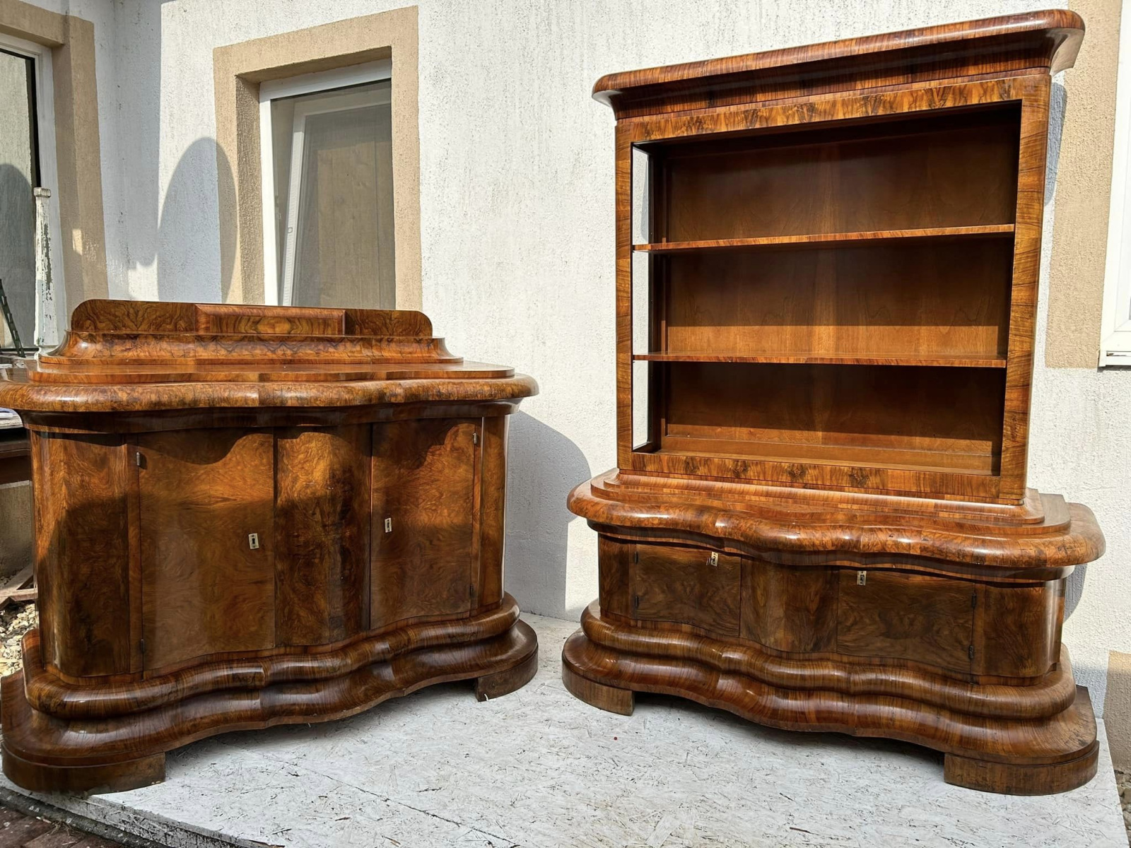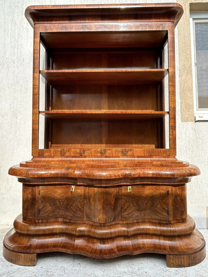 V34 - Art DECO zostava: Nádherné a zriedkavé Viedenské ART DECO, malý príborník a vitrína v bytovom stave! S peknou orechovou dýhou. Reštaurované pred 4 rokmi!