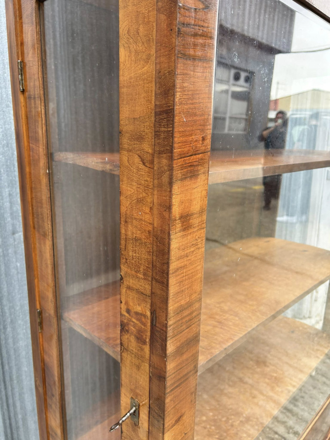 V56 -Art DECO vitrina /sklenník/ v peknom bytovom stave s tromi policami s peknou orechovou dyhou!