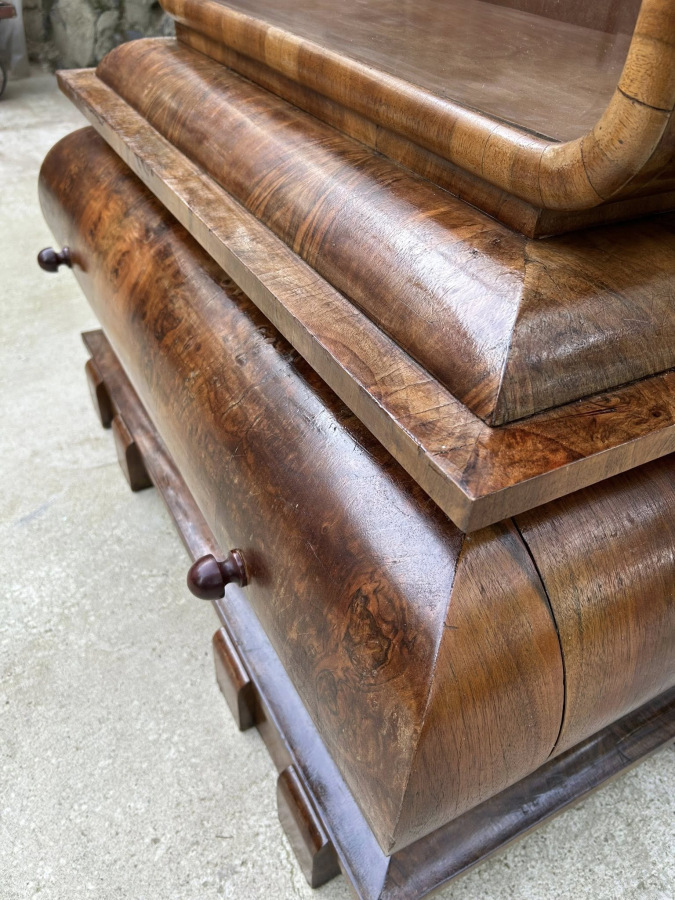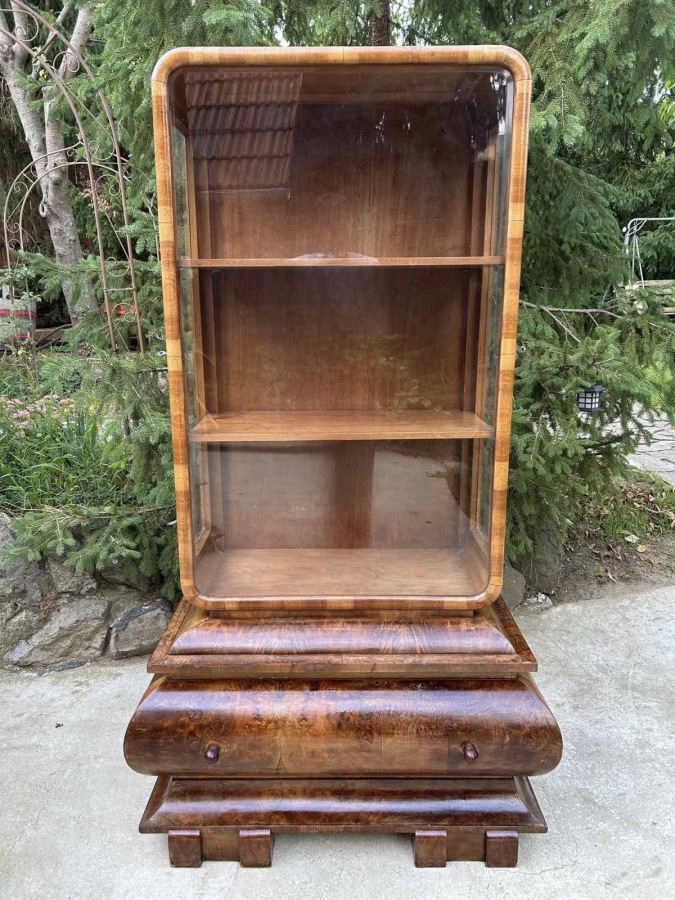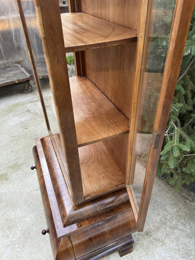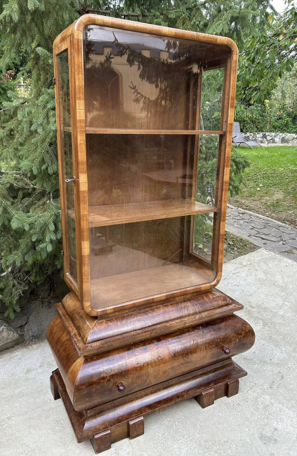 V62 - Art DECO vitrína v peknom bytovom stave! Krásna orechová korenica!