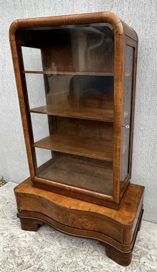 V64 - Pekná Art DECO vitrina v bytovom stave. Jemná vitrína, vhodná aj ako napr. výstavná vitrína do obchodných priestorov.