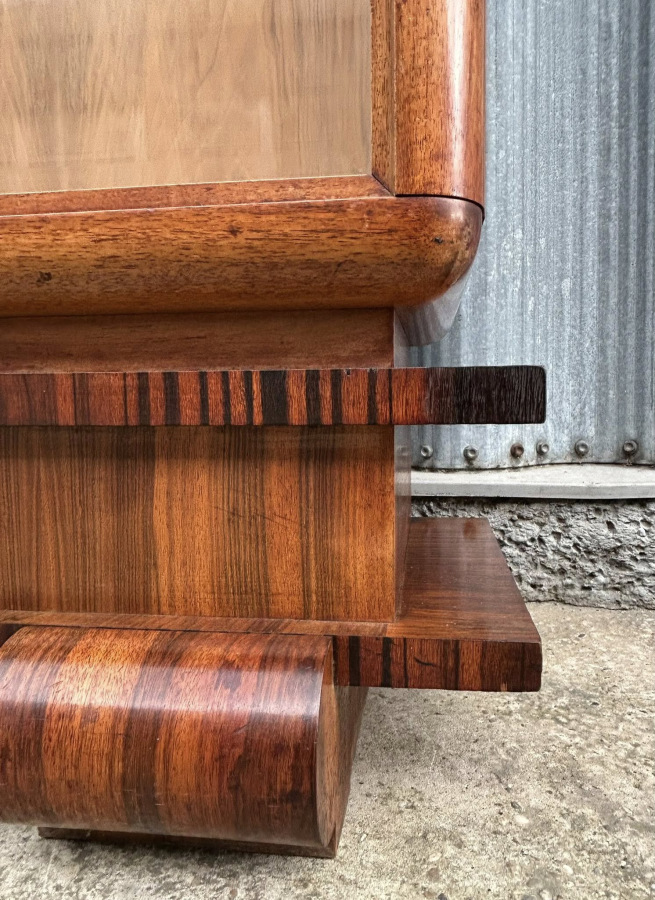 V69 - Vitrina Art DECO po kompletnej renovácii! Vitrína má 3 poličky zo skla! S povrchovou úpravou Šelak/politúra! Ihneď k odberu! Veľmi pekná!!! Kombinácia orechového masívu s orechovou dýhou a dyhou makassar!